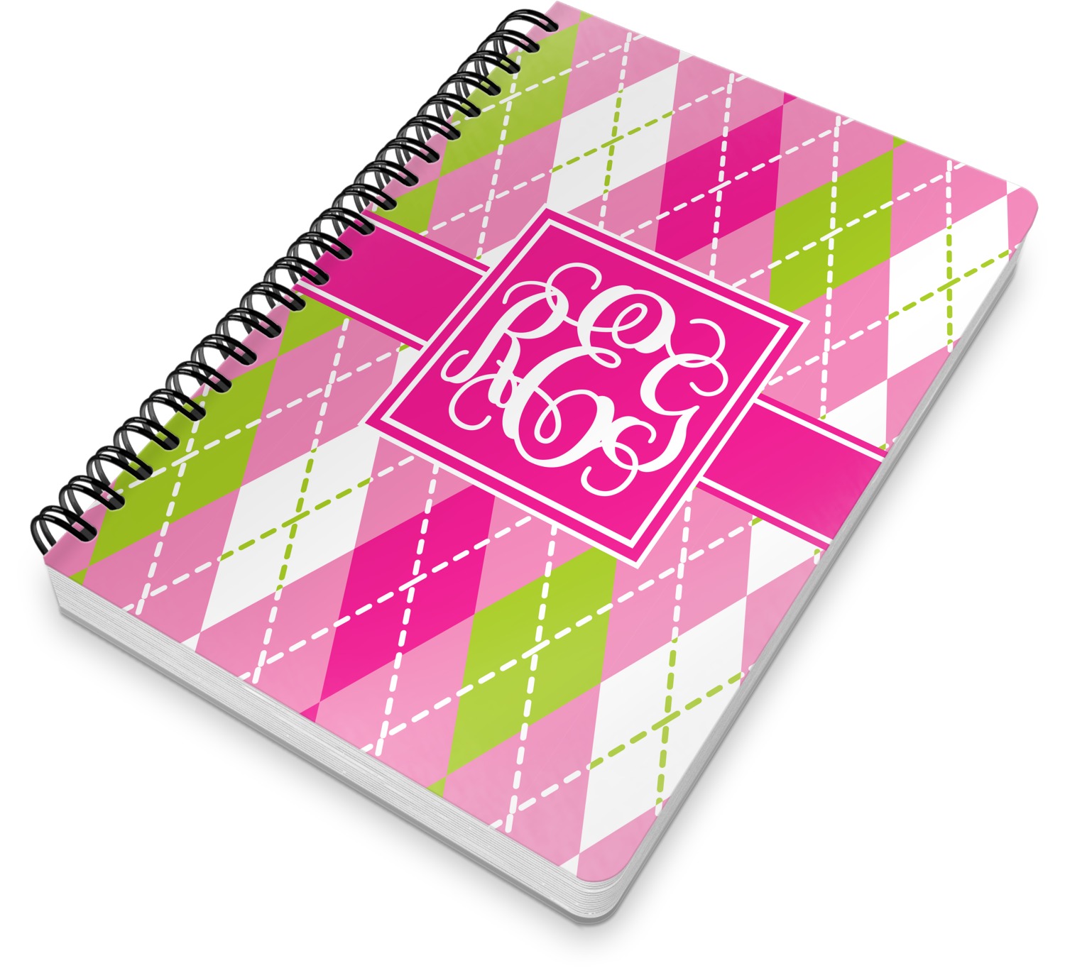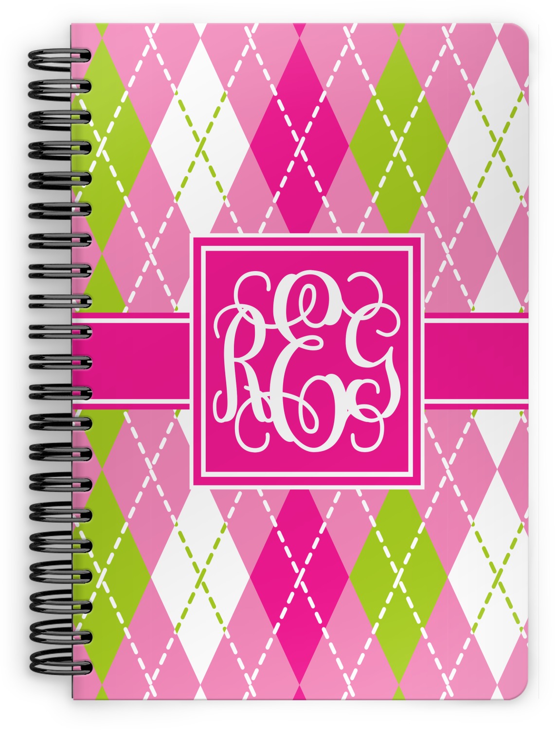 Looking for a preppy, yet still girly girl design? This pink and green argyle print with a square label and an interlocking monogram is as girly as it gets. We have created this argyle pattern in lime green, orchid pink and hot pink. For all of us girly girls and preppies and princesses, this design is a favorite!
