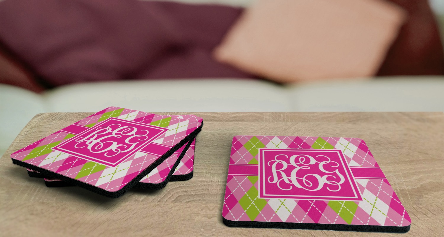 Replace your boring, run-of-the-mill coasters with a set of 4 personalized coasters! When personalized, these coasters will protect your beloved surfaces while adding to your home's decor! Thanks to your coasters bright colors and unique design, your guests will be eager to use them!