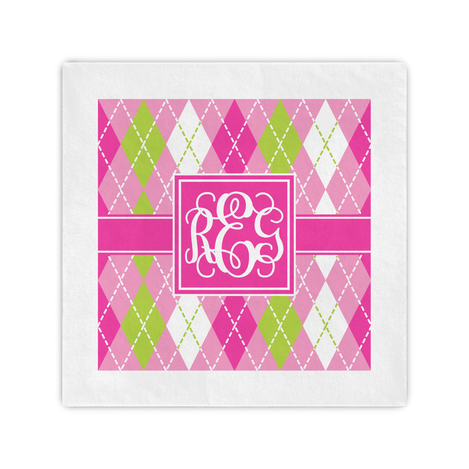 Looking for a preppy, yet still girly girl design? This pink and green argyle print with a square label and an interlocking monogram is as girly as it gets. We have created this argyle pattern in lime green, orchid pink and hot pink. For all of us girly girls and preppies and princesses, this design is a favorite!