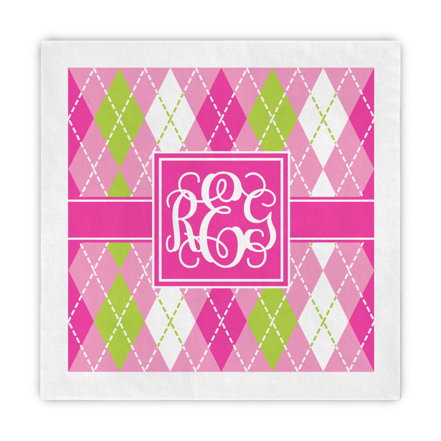 Looking for a preppy, yet still girly girl design? This pink and green argyle print with a square label and an interlocking monogram is as girly as it gets. We have created this argyle pattern in lime green, orchid pink and hot pink. For all of us girly girls and preppies and princesses, this design is a favorite!