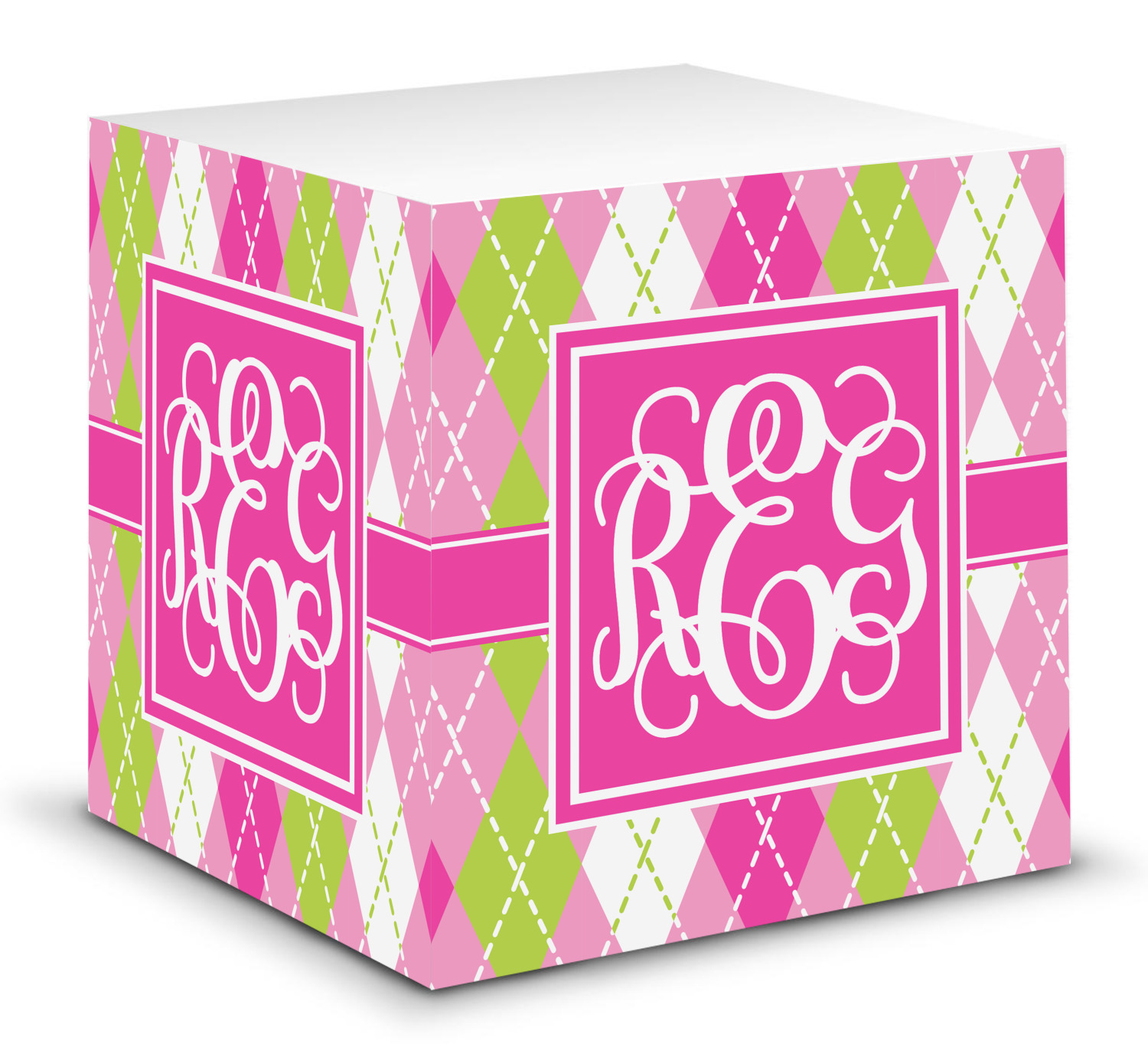 Looking for a preppy, yet still girly girl design? This pink and green argyle print with a square label and an interlocking monogram is as girly as it gets. We have created this argyle pattern in lime green, orchid pink and hot pink. For all of us girly girls and preppies and princesses, this design is a favorite!