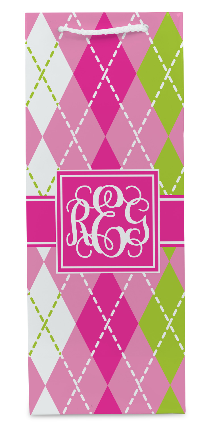 Looking for a preppy, yet still girly girl design? This pink and green argyle print with a square label and an interlocking monogram is as girly as it gets. We have created this argyle pattern in lime green, orchid pink and hot pink. For all of us girly girls and preppies and princesses, this design is a favorite!