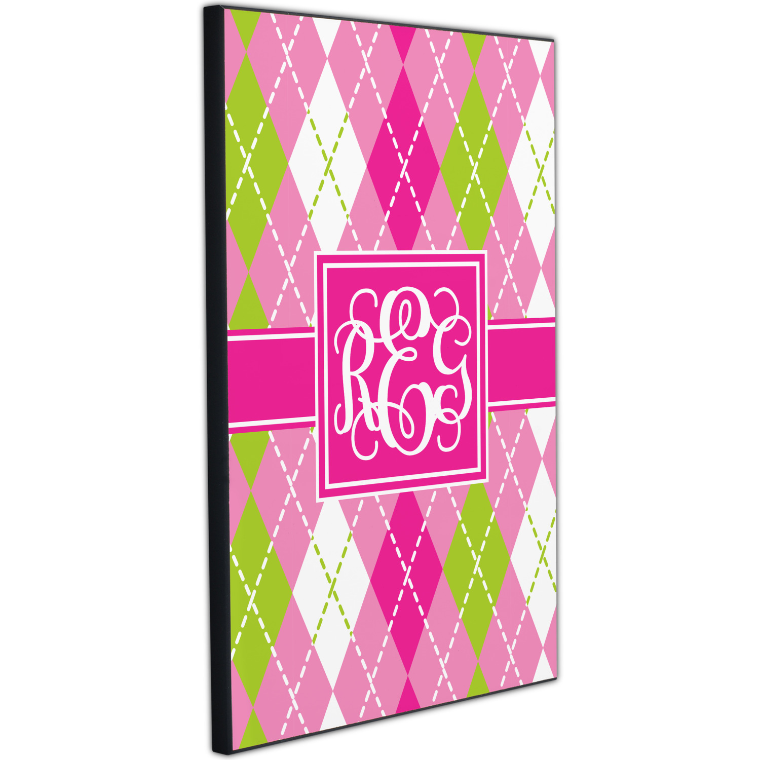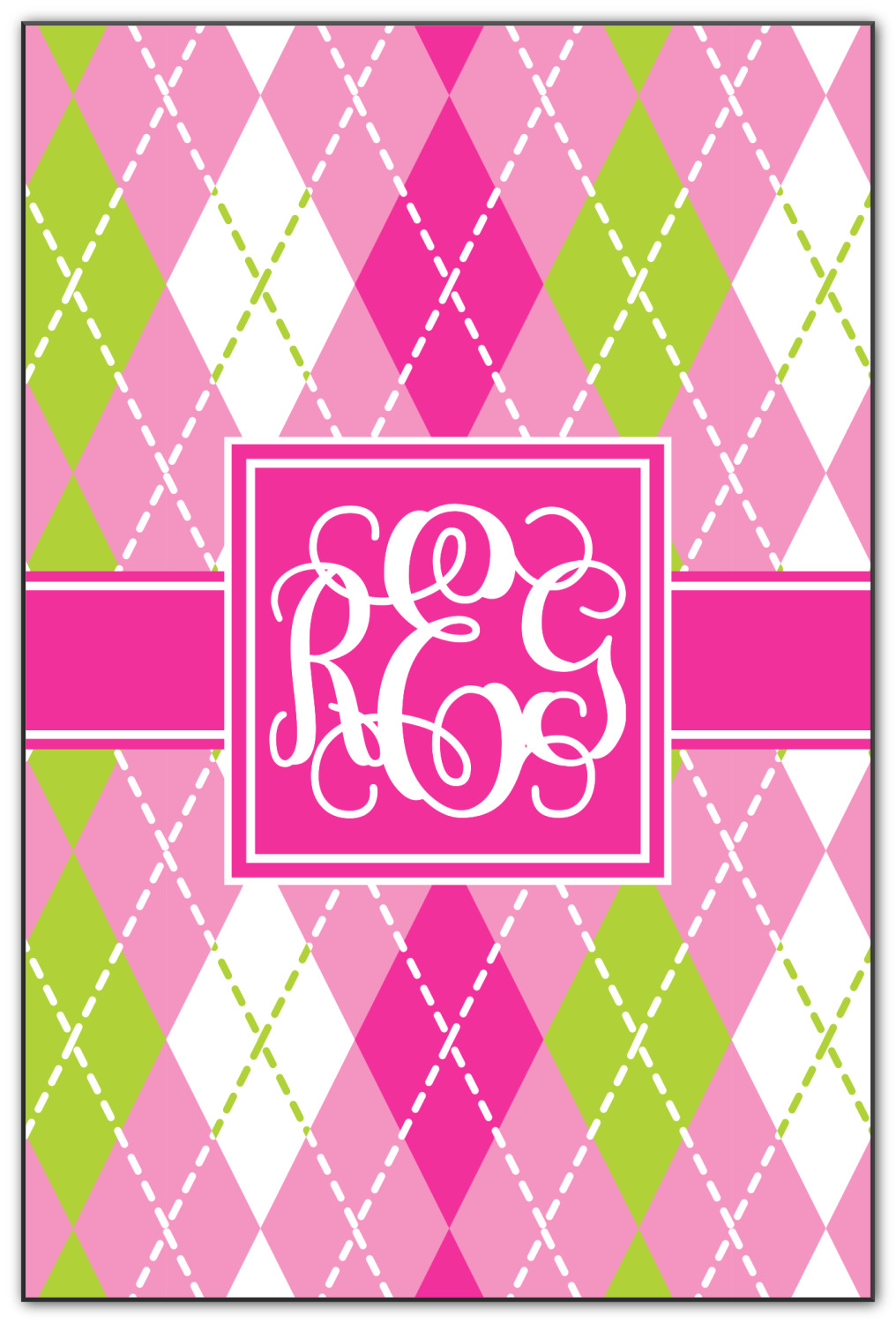 Looking for a preppy, yet still girly girl design? This pink and green argyle print with a square label and an interlocking monogram is as girly as it gets. We have created this argyle pattern in lime green, orchid pink and hot pink. For all of us girly girls and preppies and princesses, this design is a favorite!