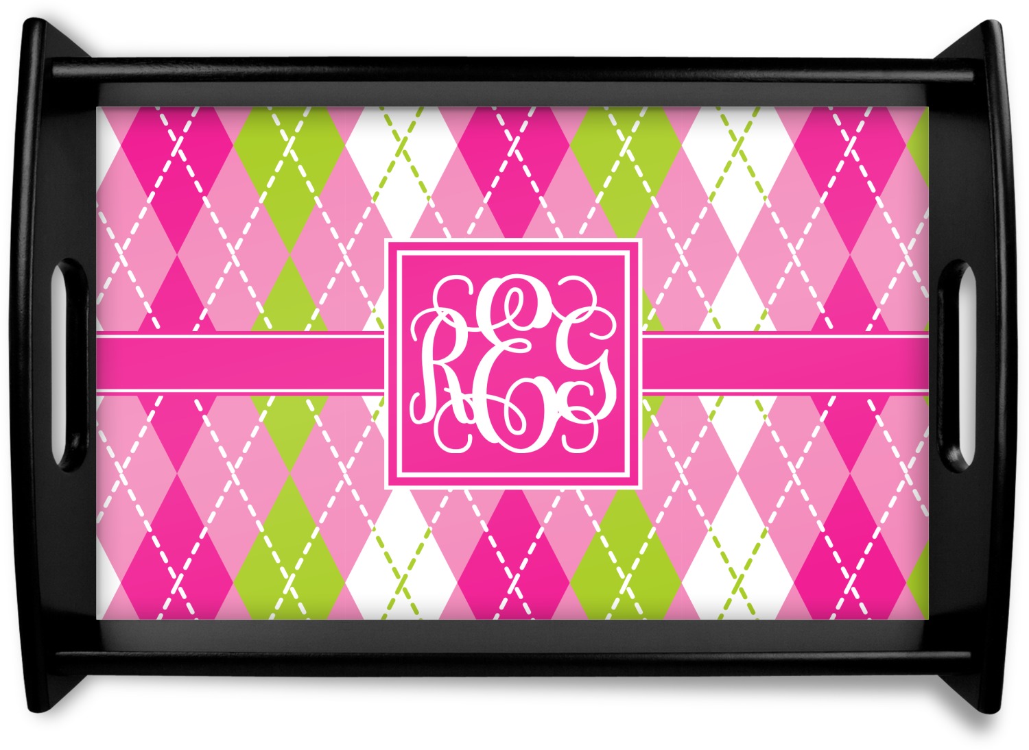 Looking for a preppy, yet still girly girl design? This pink and green argyle print with a square label and an interlocking monogram is as girly as it gets. We have created this argyle pattern in lime green, orchid pink and hot pink. For all of us girly girls and preppies and princesses, this design is a favorite!