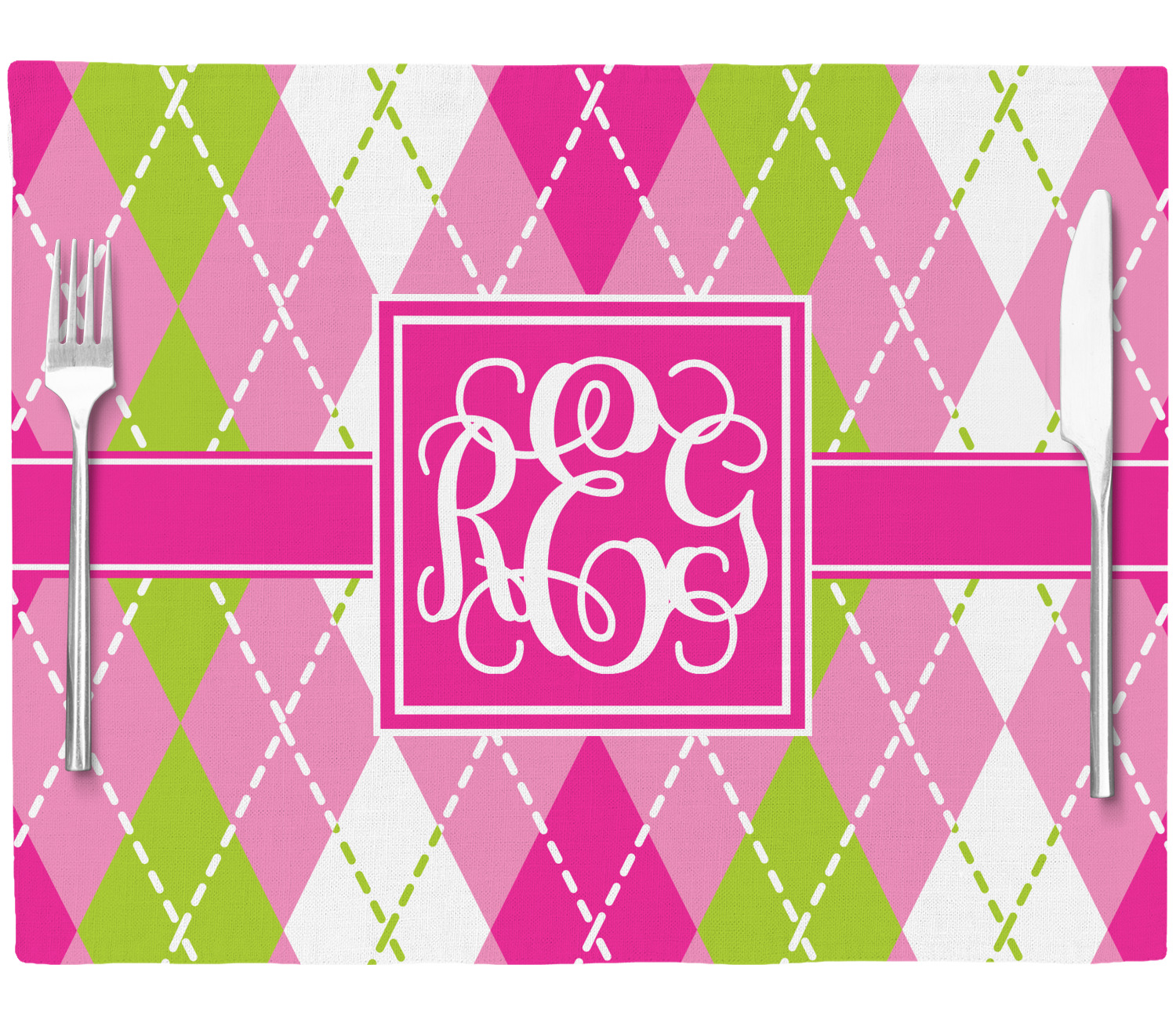 Looking for a preppy, yet still girly girl design? This pink and green argyle print with a square label and an interlocking monogram is as girly as it gets. We have created this argyle pattern in lime green, orchid pink and hot pink. For all of us girly girls and preppies and princesses, this design is a favorite!