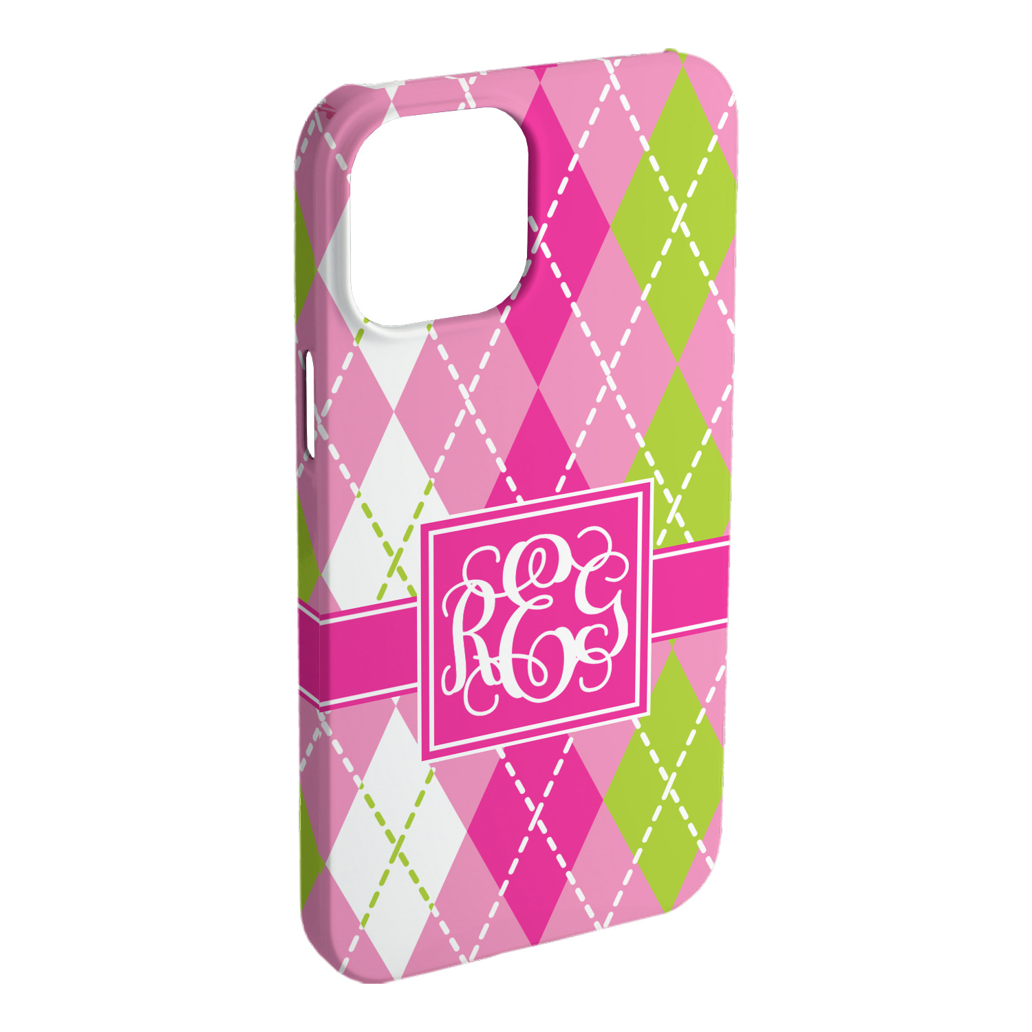 Looking for a preppy, yet still girly girl design? This pink and green argyle print with a square label and an interlocking monogram is as girly as it gets. We have created this argyle pattern in lime green, orchid pink and hot pink. For all of us girly girls and preppies and princesses, this design is a favorite!