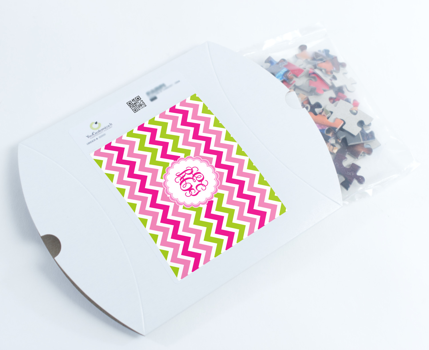 Depending on the look you are trying to achieve, you can add; a thematic pattern or background, with a photo in a frame and text or personalization to your puzzle. Basically if you can imagine it, you can design it!