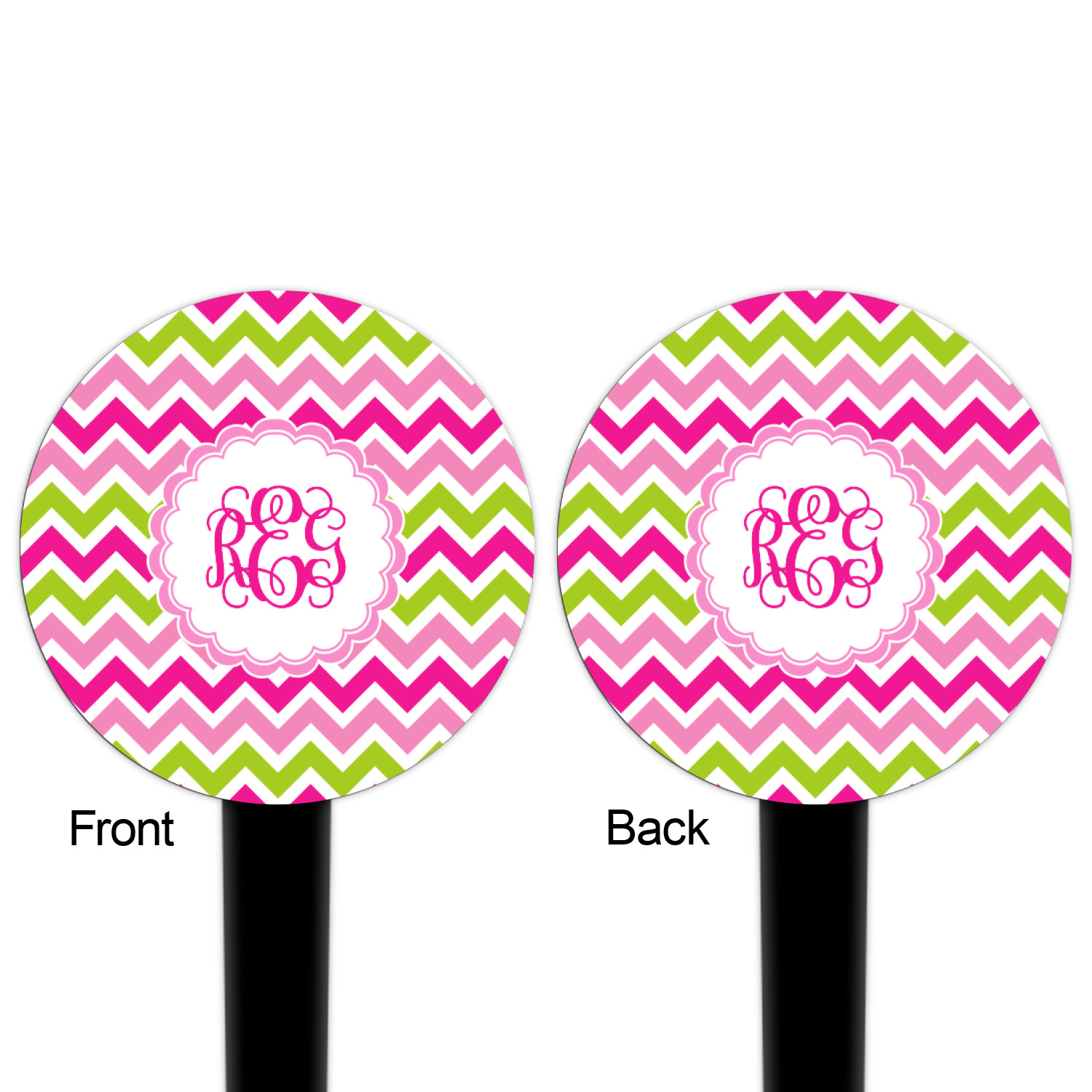 Looking for a girly girl design. This pink and green chevron print with a scalloped label and an interlocking monogram is as girly as it gets. We have created this chevron pattern in lime green, orchid pink and hot pink. For all of us girly girls and princesses, this is our design choice!