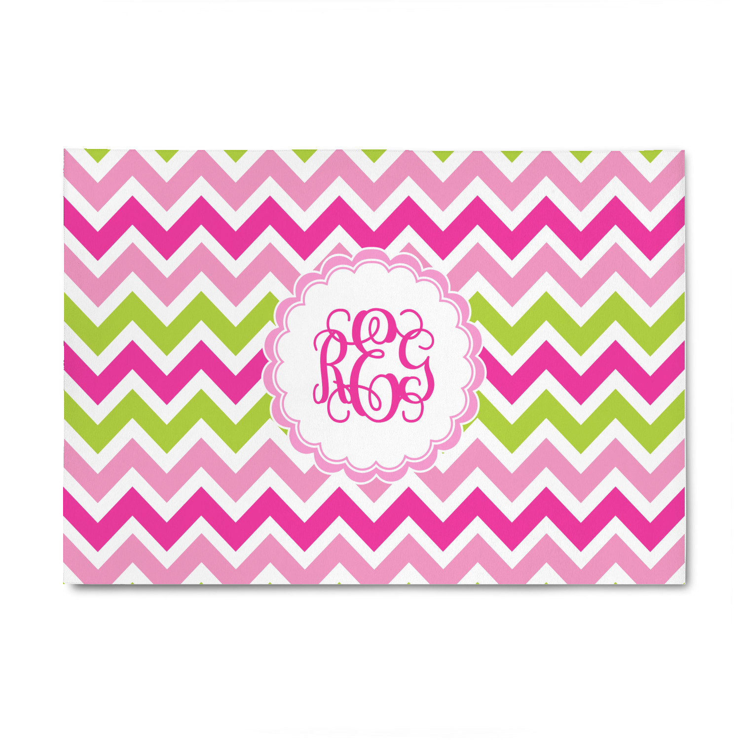 Looking for a girly girl design. This pink and green chevron print with a scalloped label and an interlocking monogram is as girly as it gets. We have created this chevron pattern in lime green, orchid pink and hot pink. For all of us girly girls and princesses, this is our design choice!