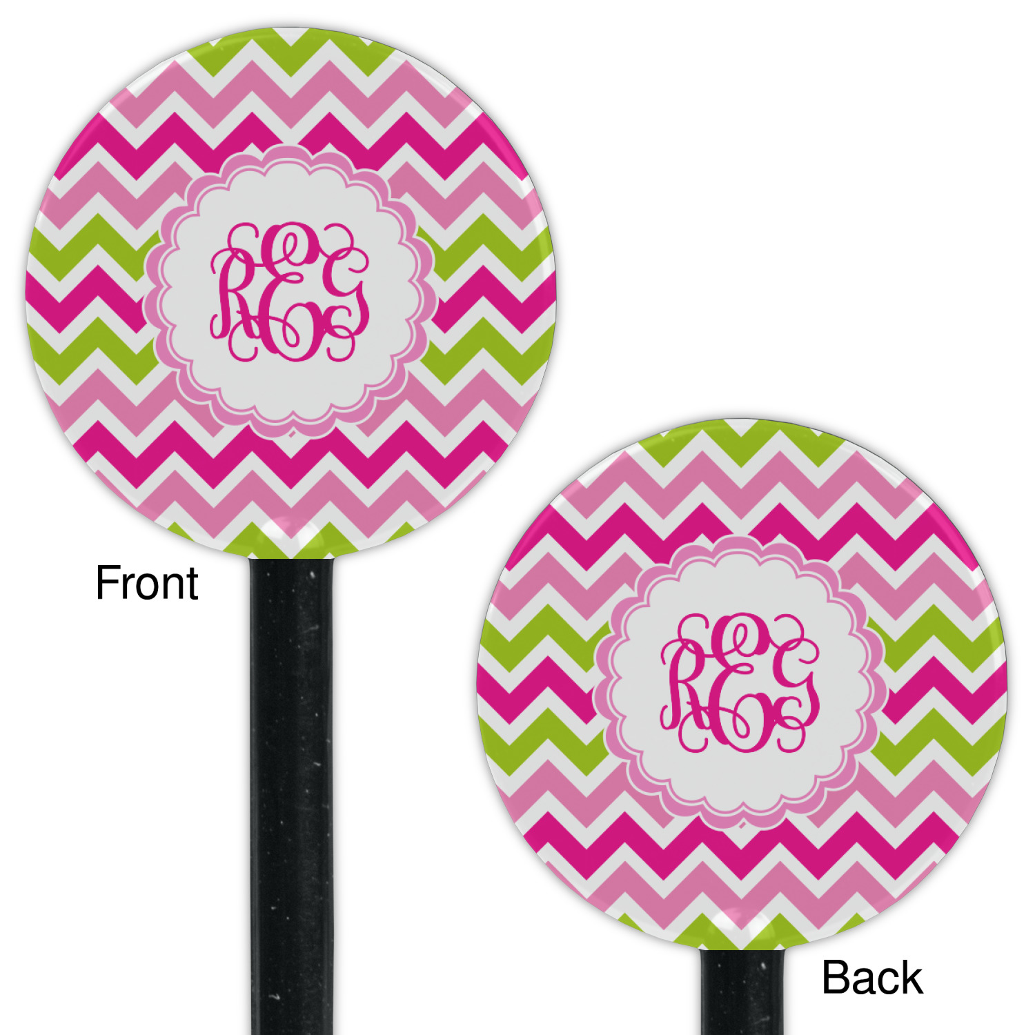 Looking for a girly girl design. This pink and green chevron print with a scalloped label and an interlocking monogram is as girly as it gets. We have created this chevron pattern in lime green, orchid pink and hot pink. For all of us girly girls and princesses, this is our design choice!