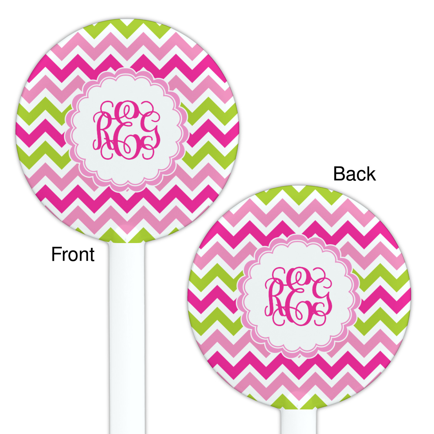 Looking for a girly girl design. This pink and green chevron print with a scalloped label and an interlocking monogram is as girly as it gets. We have created this chevron pattern in lime green, orchid pink and hot pink. For all of us girly girls and princesses, this is our design choice!