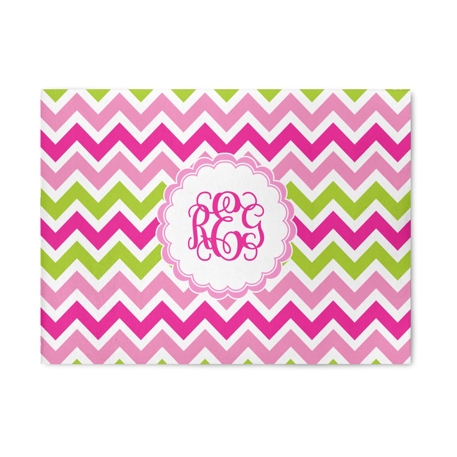 Looking for a girly girl design. This pink and green chevron print with a scalloped label and an interlocking monogram is as girly as it gets. We have created this chevron pattern in lime green, orchid pink and hot pink. For all of us girly girls and princesses, this is our design choice!
