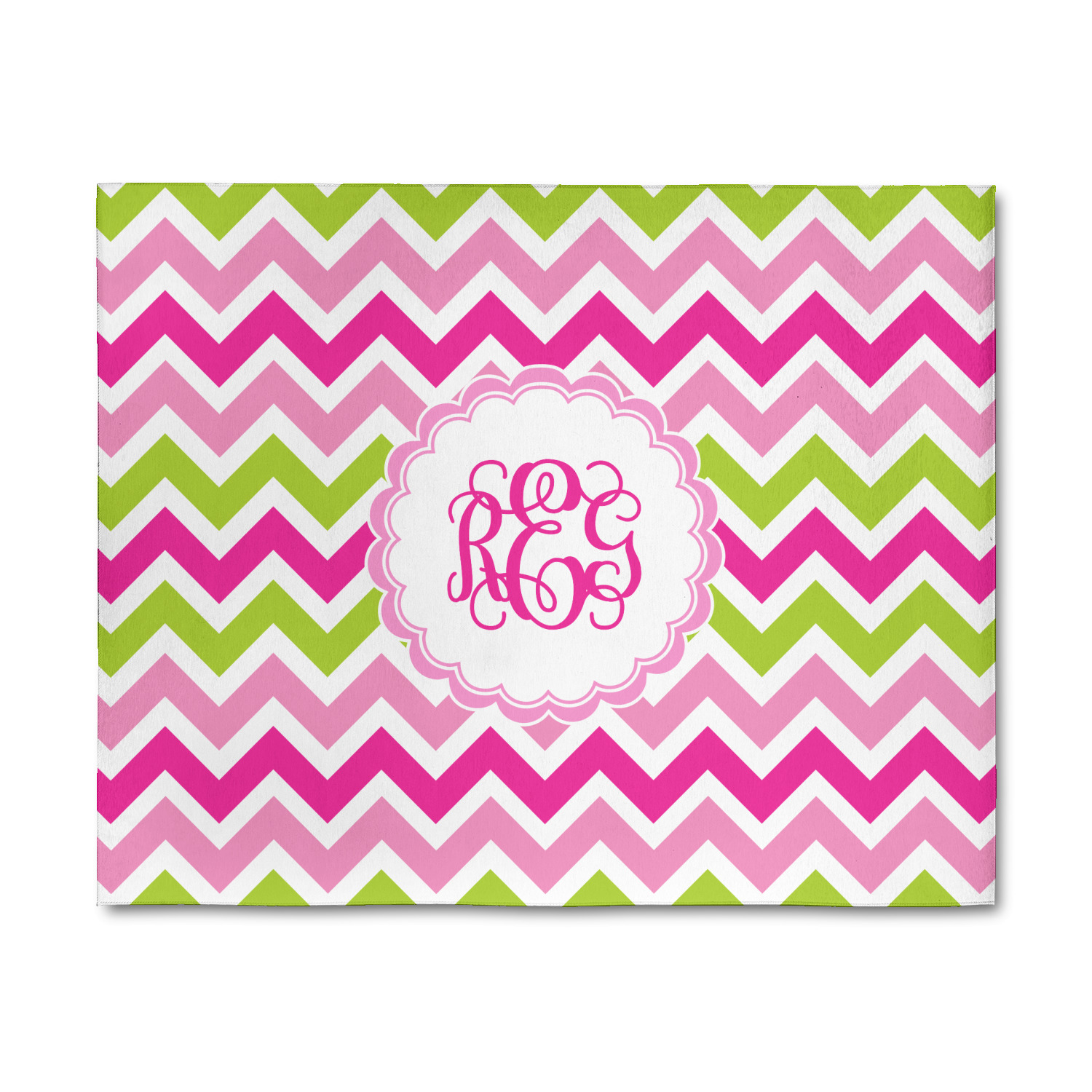 Looking for a girly girl design. This pink and green chevron print with a scalloped label and an interlocking monogram is as girly as it gets. We have created this chevron pattern in lime green, orchid pink and hot pink. For all of us girly girls and princesses, this is our design choice!