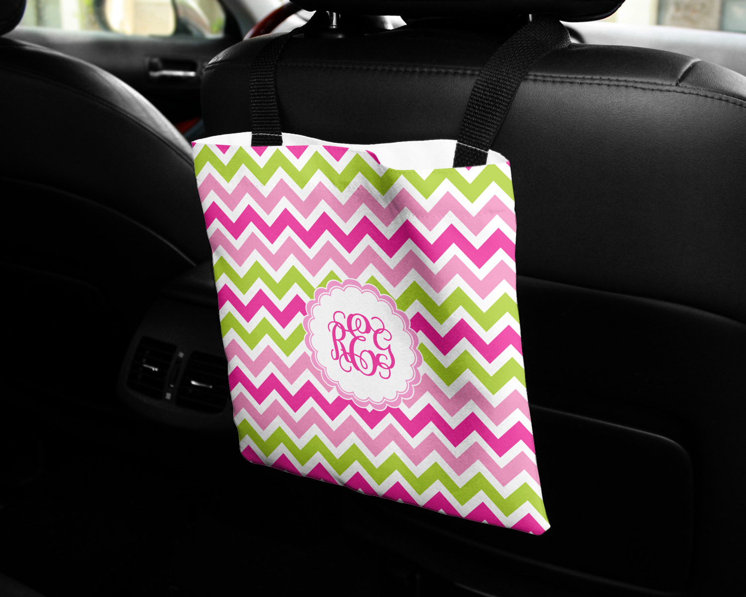 These car back seat organizers are sturdy tote-like bags, fabricated from a robust polyester, and features a single handle on the back side. The strap features an attachable velcro for easy attachment to headrests, grocery carts, car seats, and more. Simply undo the velcro, loop the strap around the headrest, reattach the velcro, and let the organizer hang from the front seat. These car organizers are the perfect means of increasing your backseat's legroom, while storing multiple items in one place for better accessibility. Each car back seat organizer measures at 10 by 10 inches, and features your personalized design printed across its front and back.
