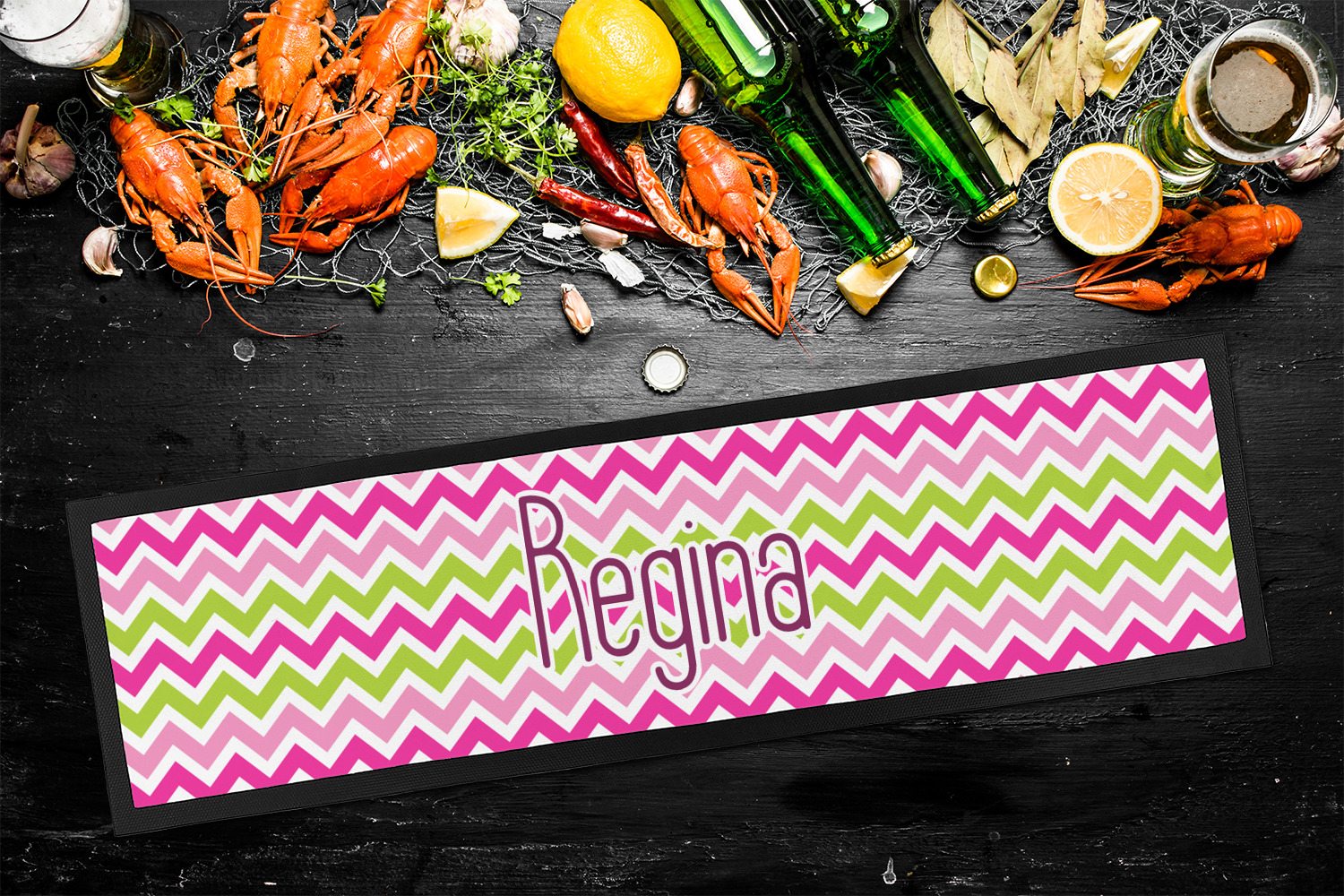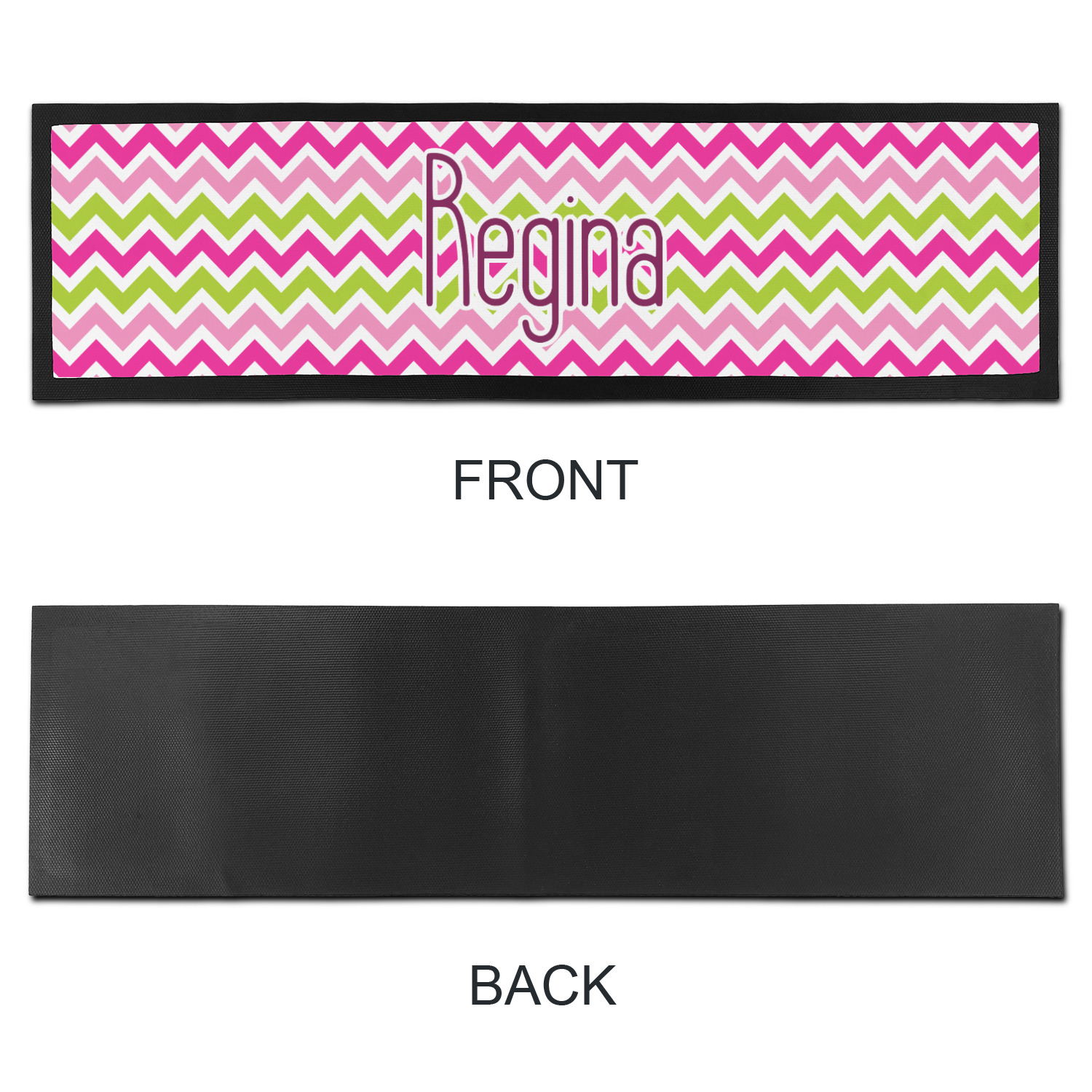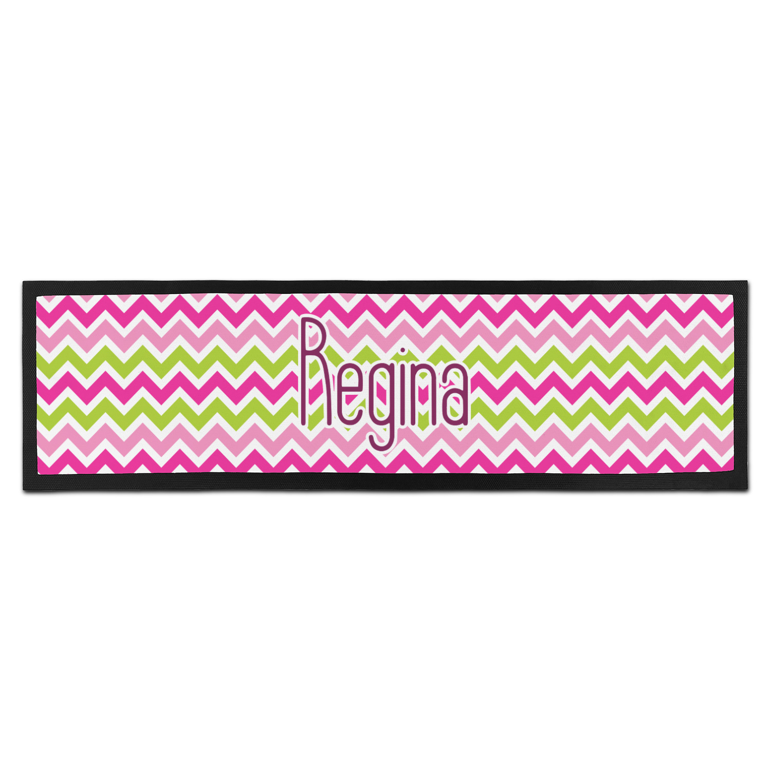Looking for a girly girl design. This pink and green chevron print with a scalloped label and an interlocking monogram is as girly as it gets. We have created this chevron pattern in lime green, orchid pink and hot pink. For all of us girly girls and princesses, this is our design choice!