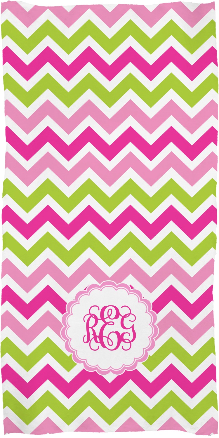 Looking for a girly girl design. This pink and green chevron print with a scalloped label and an interlocking monogram is as girly as it gets. We have created this chevron pattern in lime green, orchid pink and hot pink. For all of us girly girls and princesses, this is our design choice!
