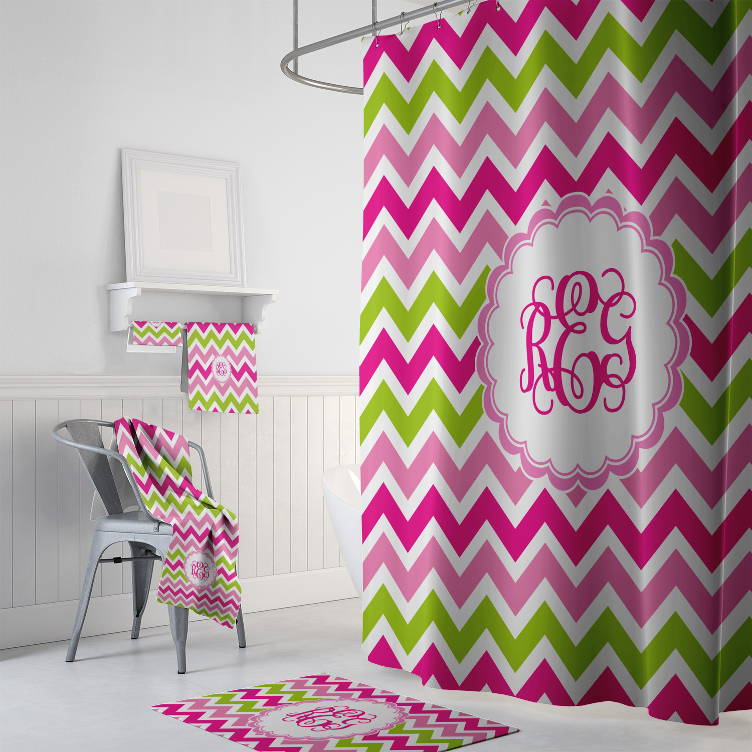 Looking for a girly girl design. This pink and green chevron print with a scalloped label and an interlocking monogram is as girly as it gets. We have created this chevron pattern in lime green, orchid pink and hot pink. For all of us girly girls and princesses, this is our design choice!