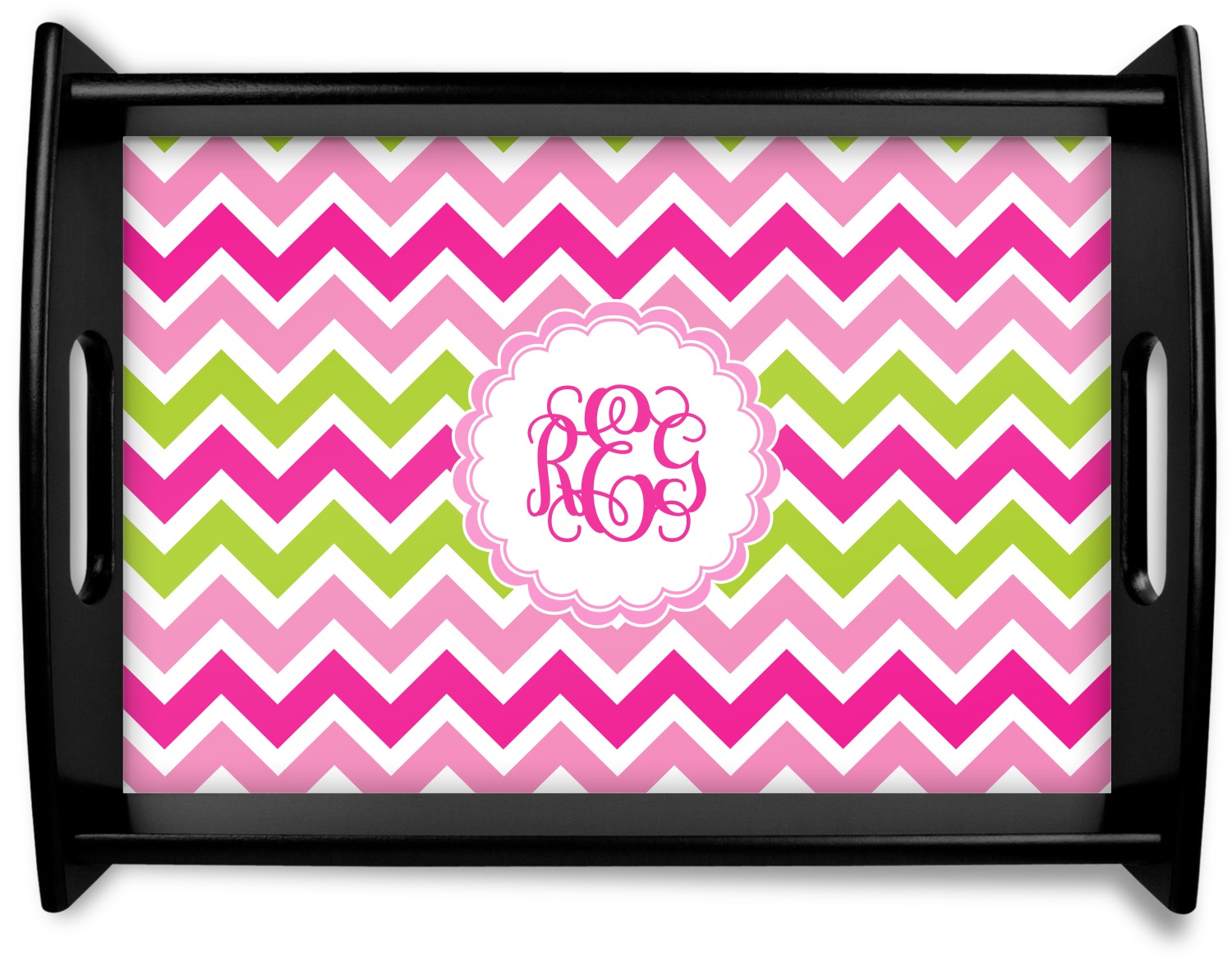 Looking for a girly girl design. This pink and green chevron print with a scalloped label and an interlocking monogram is as girly as it gets. We have created this chevron pattern in lime green, orchid pink and hot pink. For all of us girly girls and princesses, this is our design choice!