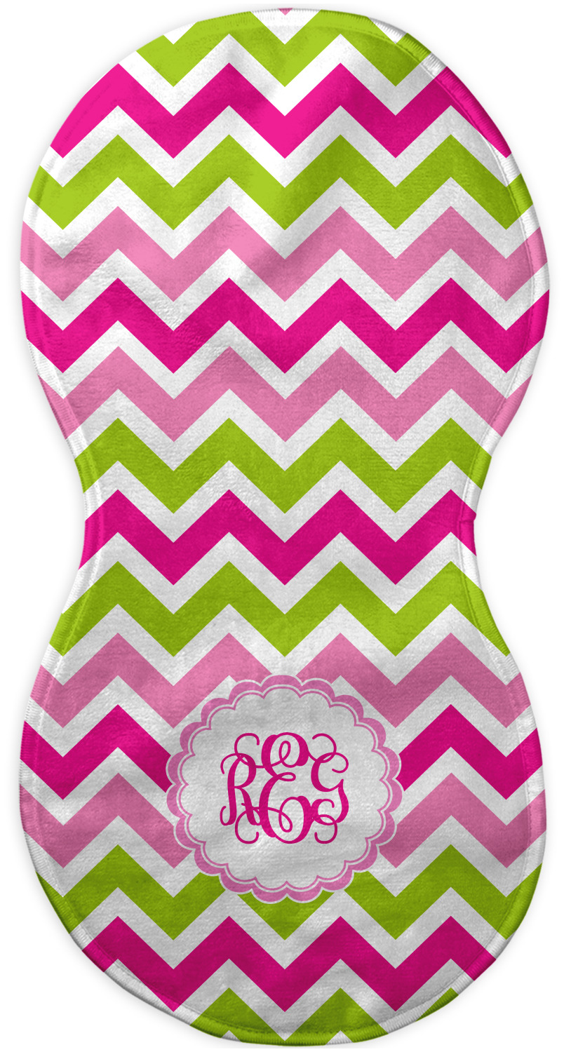 Looking for a girly girl design. This pink and green chevron print with a scalloped label and an interlocking monogram is as girly as it gets. We have created this chevron pattern in lime green, orchid pink and hot pink. For all of us girly girls and princesses, this is our design choice!