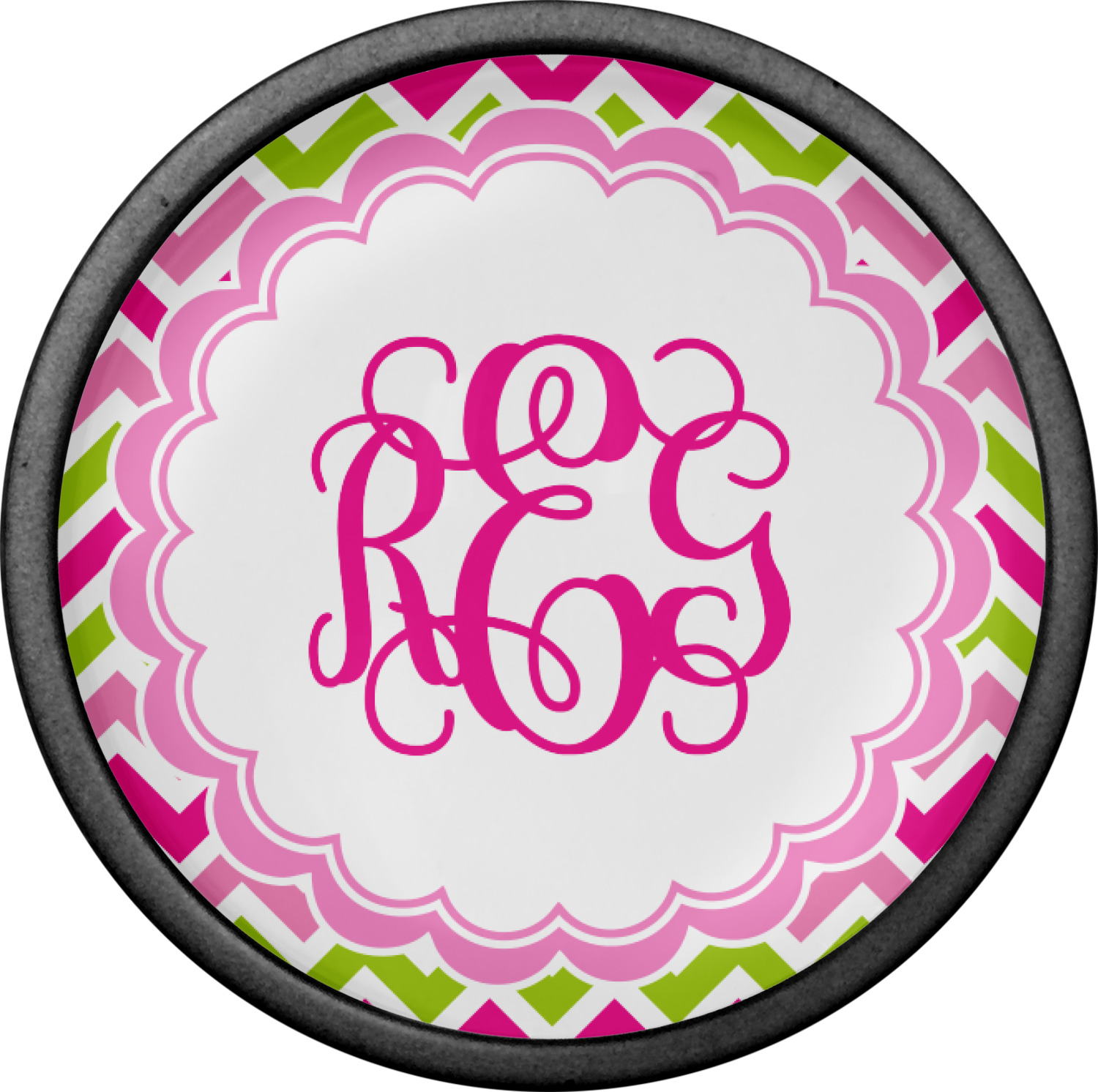 Looking for a girly girl design. This pink and green chevron print with a scalloped label and an interlocking monogram is as girly as it gets. We have created this chevron pattern in lime green, orchid pink and hot pink. For all of us girly girls and princesses, this is our design choice!