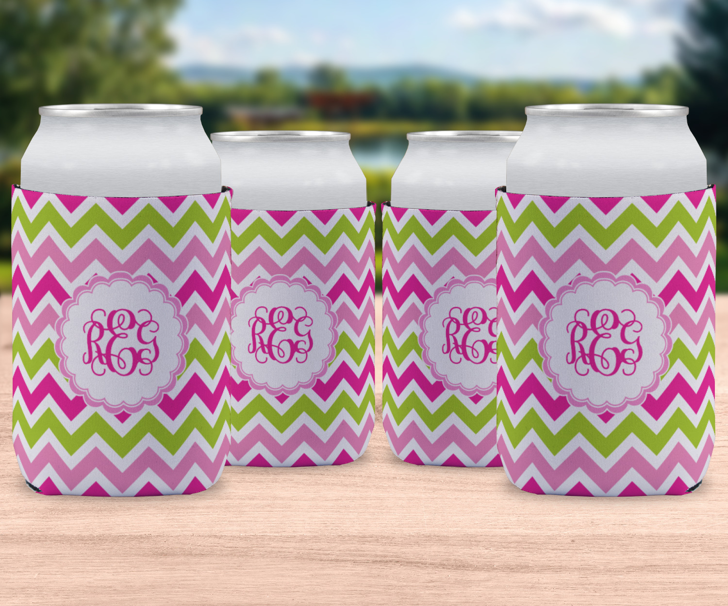 Looking for a girly girl design. This pink and green chevron print with a scalloped label and an interlocking monogram is as girly as it gets. We have created this chevron pattern in lime green, orchid pink and hot pink. For all of us girly girls and princesses, this is our design choice!