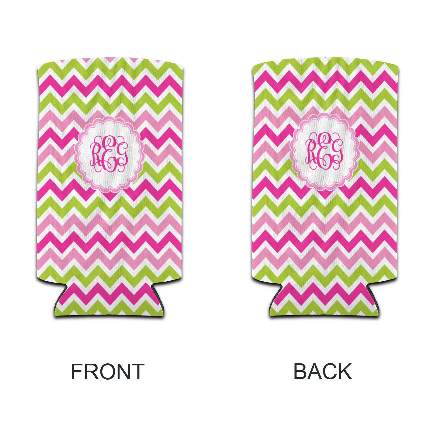 Looking for a girly girl design. This pink and green chevron print with a scalloped label and an interlocking monogram is as girly as it gets. We have created this chevron pattern in lime green, orchid pink and hot pink. For all of us girly girls and princesses, this is our design choice!