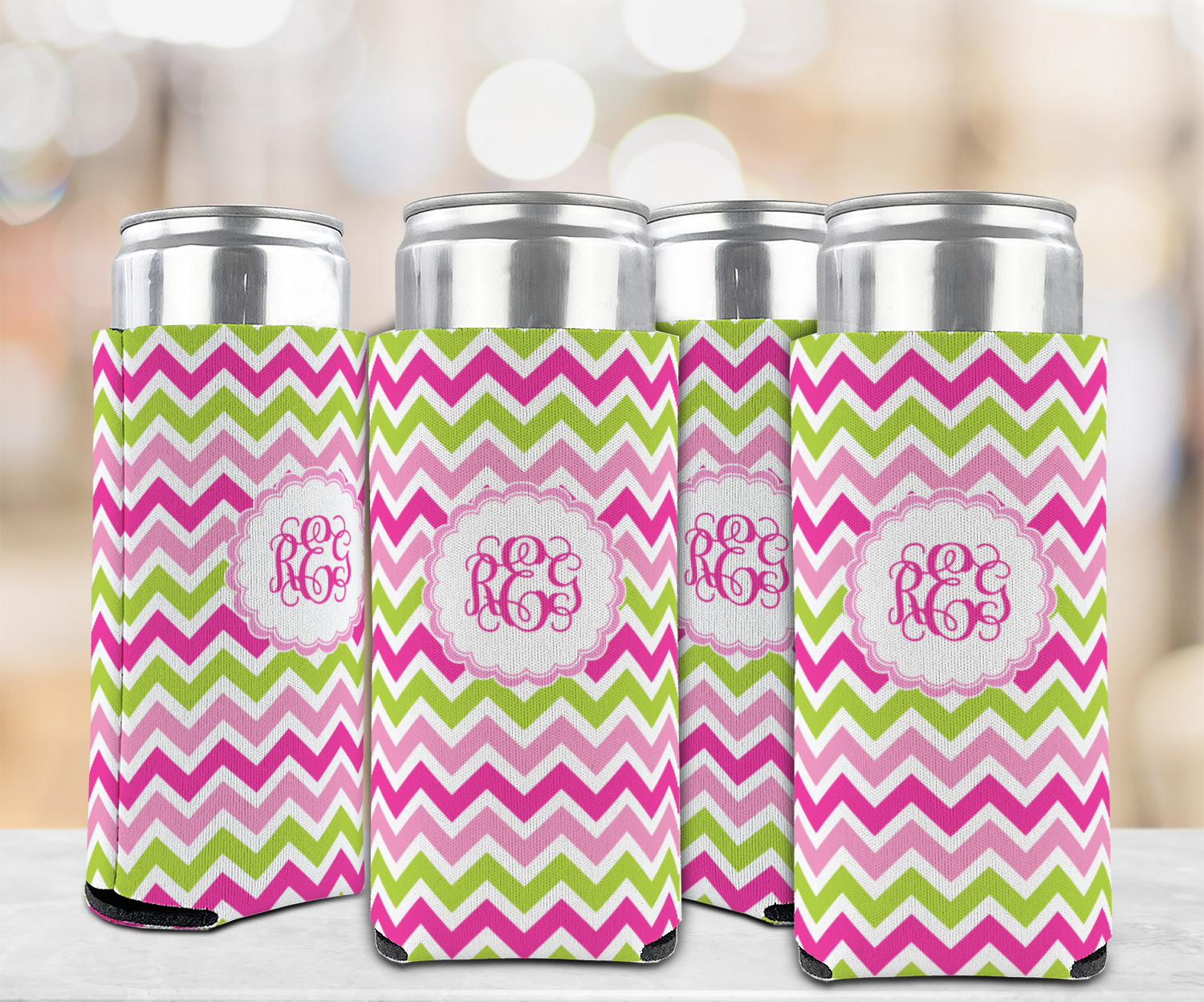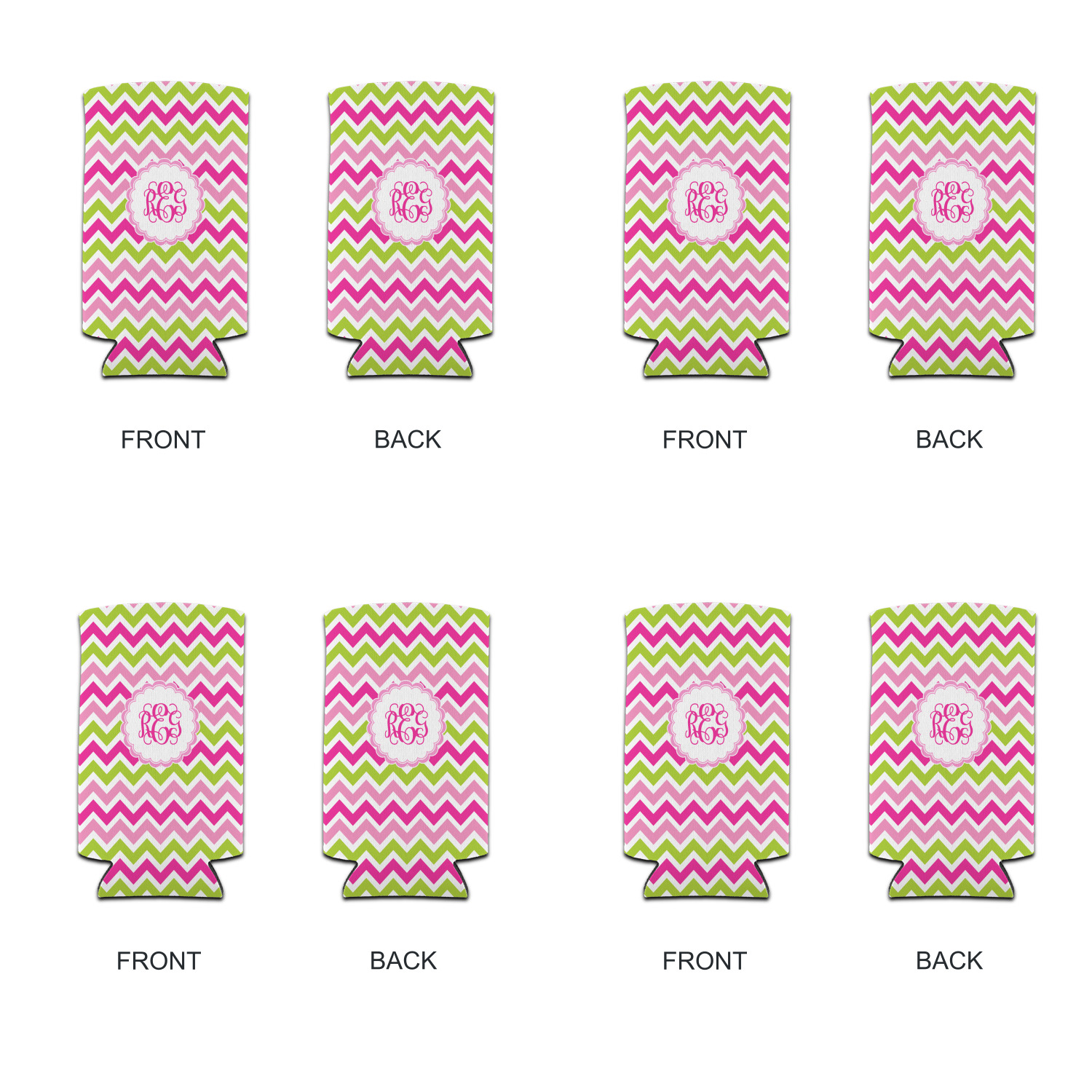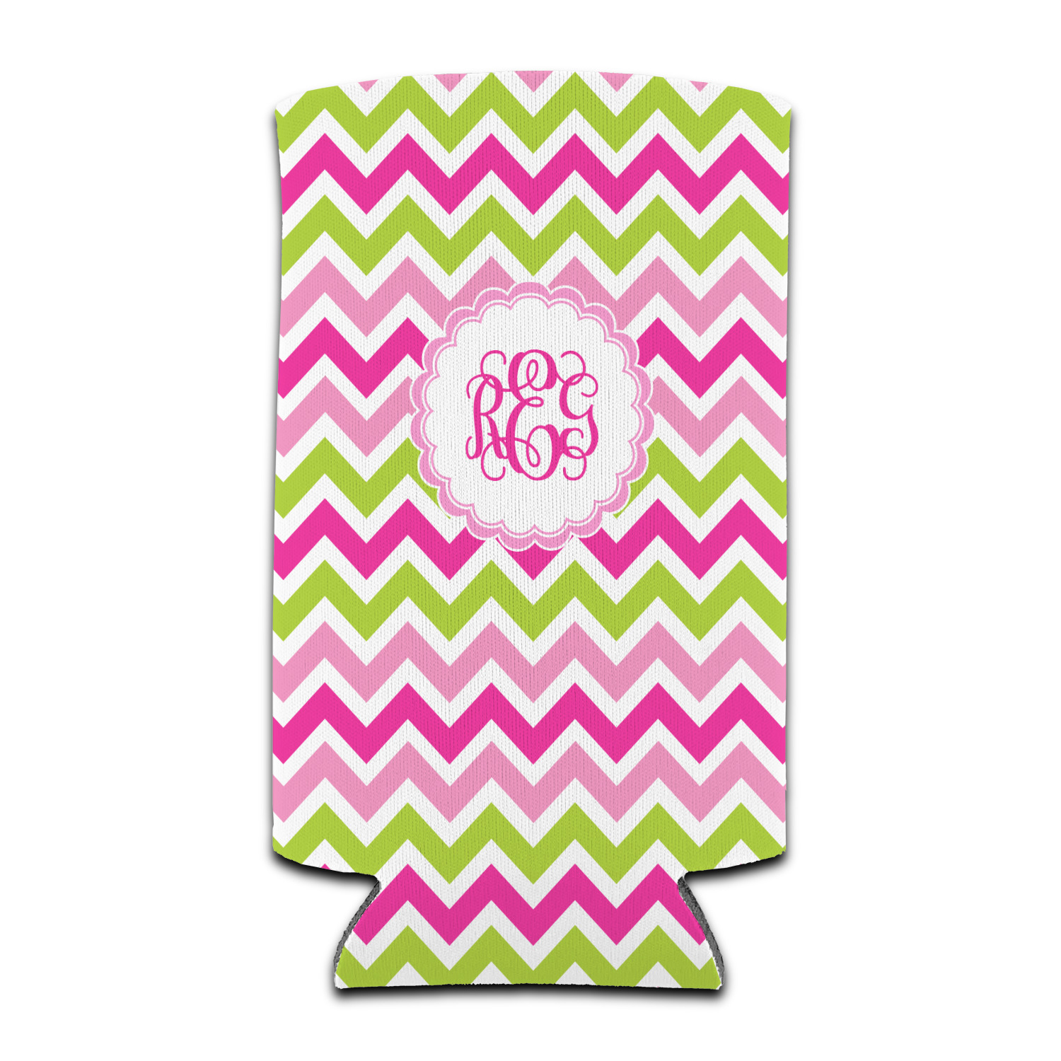 Looking for a girly girl design. This pink and green chevron print with a scalloped label and an interlocking monogram is as girly as it gets. We have created this chevron pattern in lime green, orchid pink and hot pink. For all of us girly girls and princesses, this is our design choice!