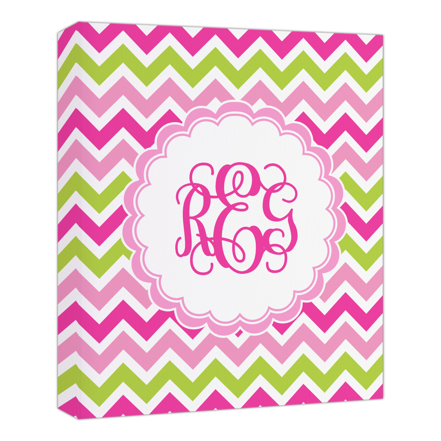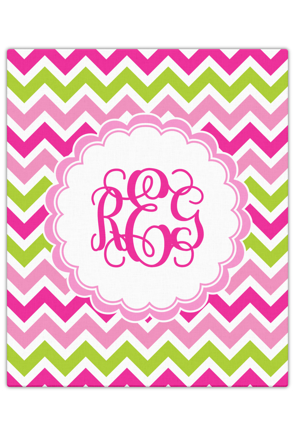 Looking for a girly girl design. This pink and green chevron print with a scalloped label and an interlocking monogram is as girly as it gets. We have created this chevron pattern in lime green, orchid pink and hot pink. For all of us girly girls and princesses, this is our design choice!