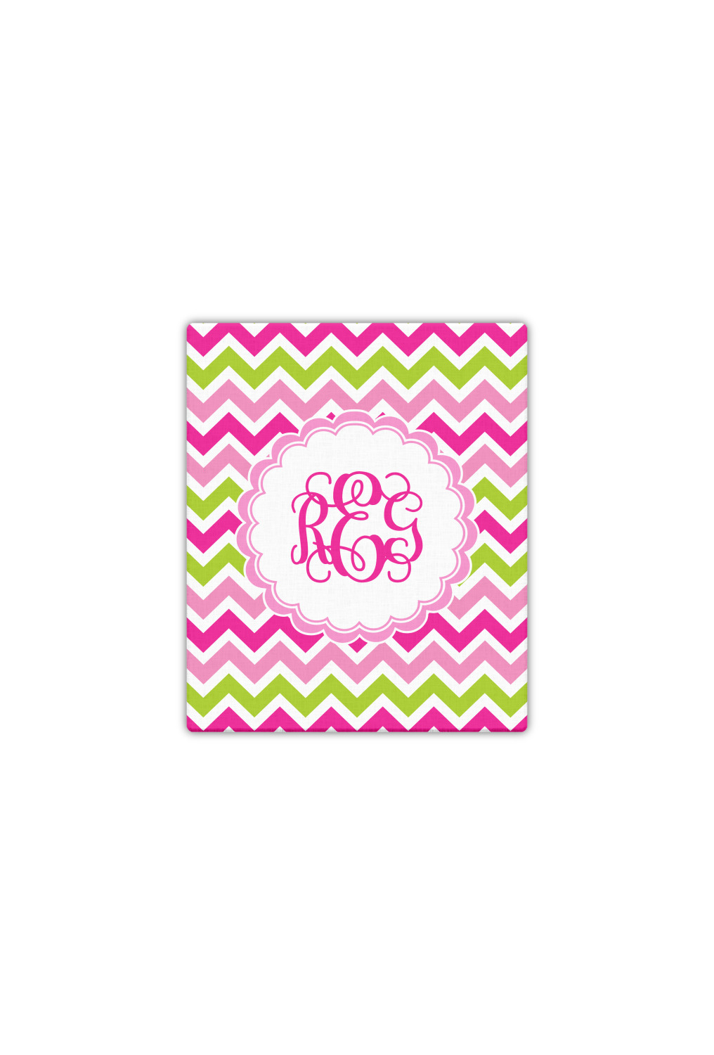 Looking for a girly girl design. This pink and green chevron print with a scalloped label and an interlocking monogram is as girly as it gets. We have created this chevron pattern in lime green, orchid pink and hot pink. For all of us girly girls and princesses, this is our design choice!