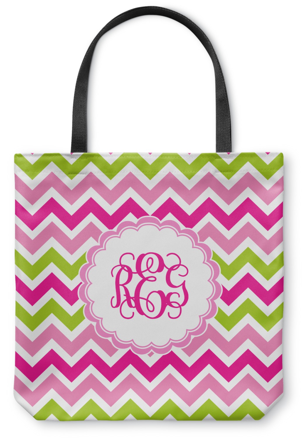 Looking for a girly girl design. This pink and green chevron print with a scalloped label and an interlocking monogram is as girly as it gets. We have created this chevron pattern in lime green, orchid pink and hot pink. For all of us girly girls and princesses, this is our design choice!