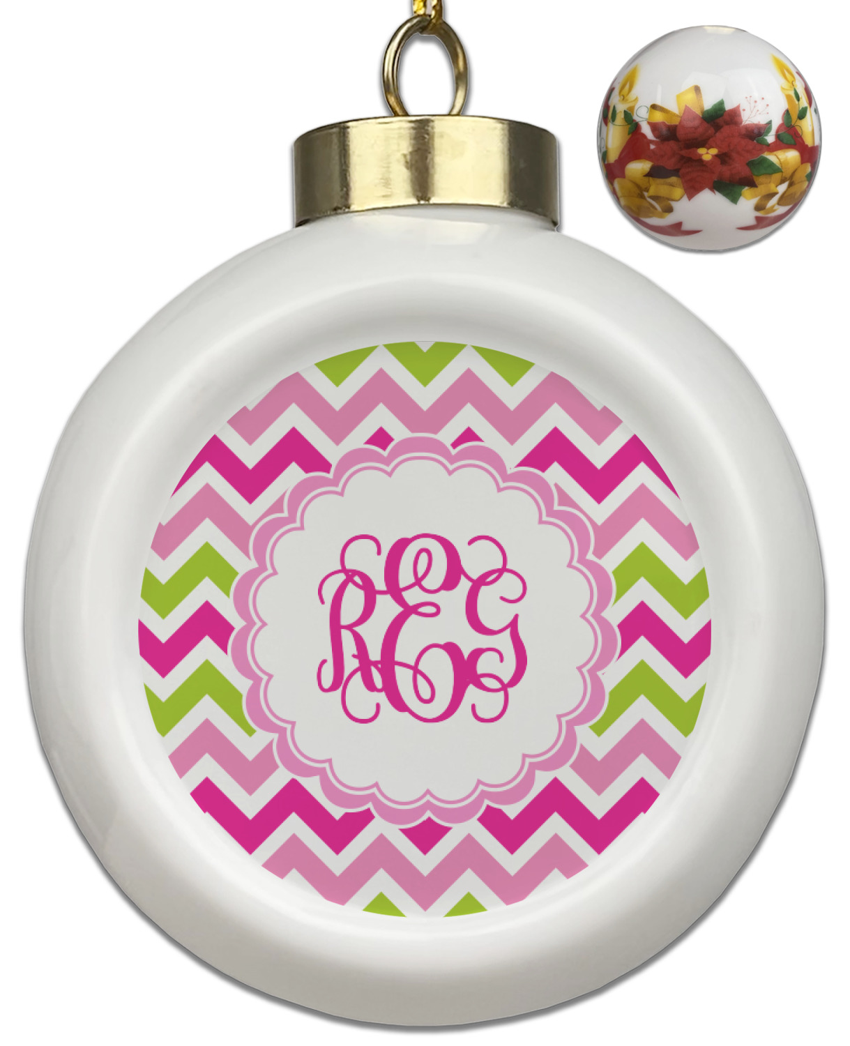 Our Christmas ornaments are a unique ceramic ball shape with a twist as it has a flat face to display your custom design! Select from one of our two design types - Christmas Tree or Poinsettia Garland - to adorn the curved back of your personal design. Each ornament measures 3H x 2.5W x 2D accompanied with a gold string accent for finishing touches to hang on your beautiful Christmas tree!