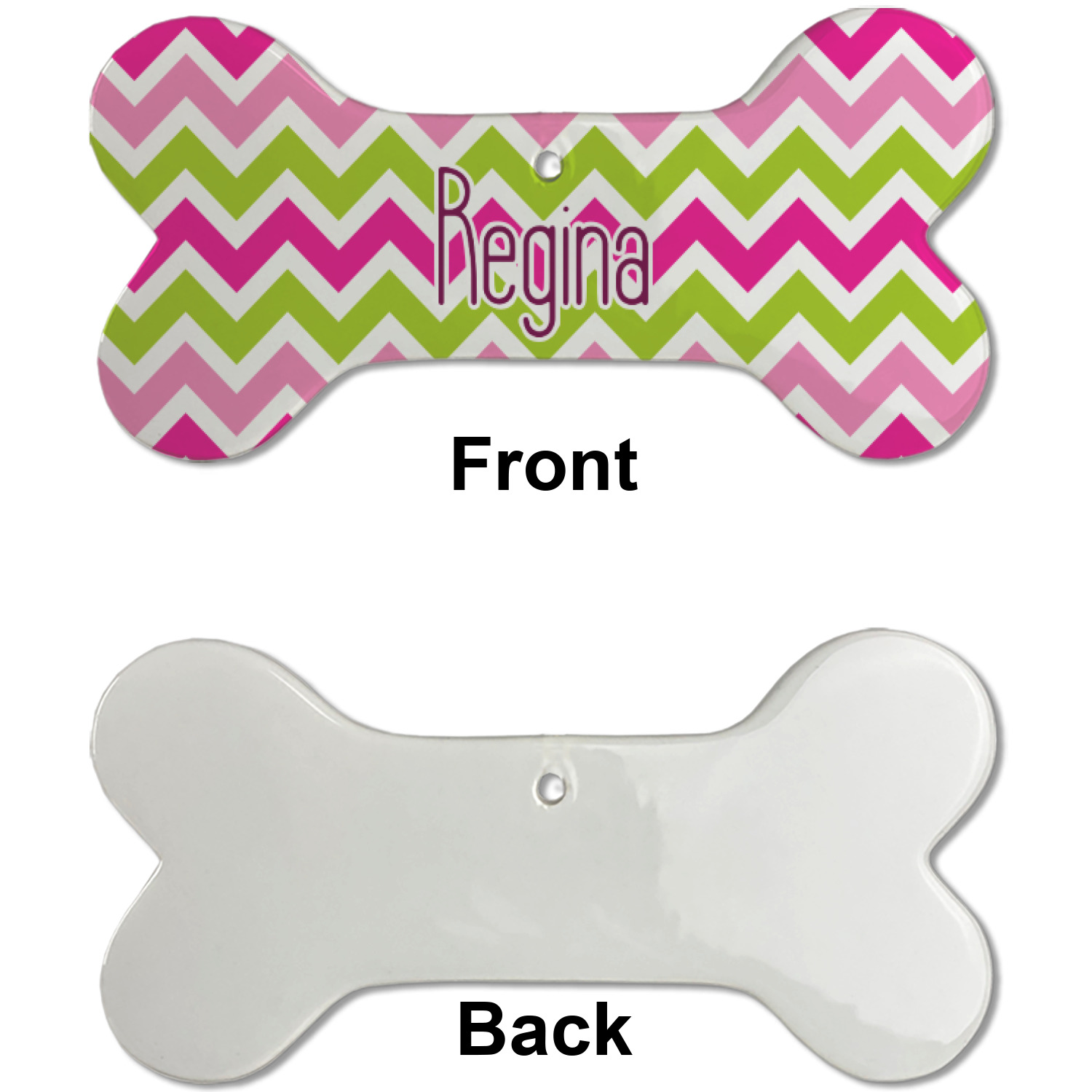 Our dog Christmas ornaments are a ceramic material with a bone-shaped structure hung horizontally. We offer two printing styles to personalize your furry friend's ornament! Choose a one-sided printing, perfect for wall decor, memorial accessory, or doghouse nameplate! Create a double-sided ornament perfect for adorning the Christmas tree. Each dog bone ornament is approximately 4.75" x 2.25" and is printed here in the USA.