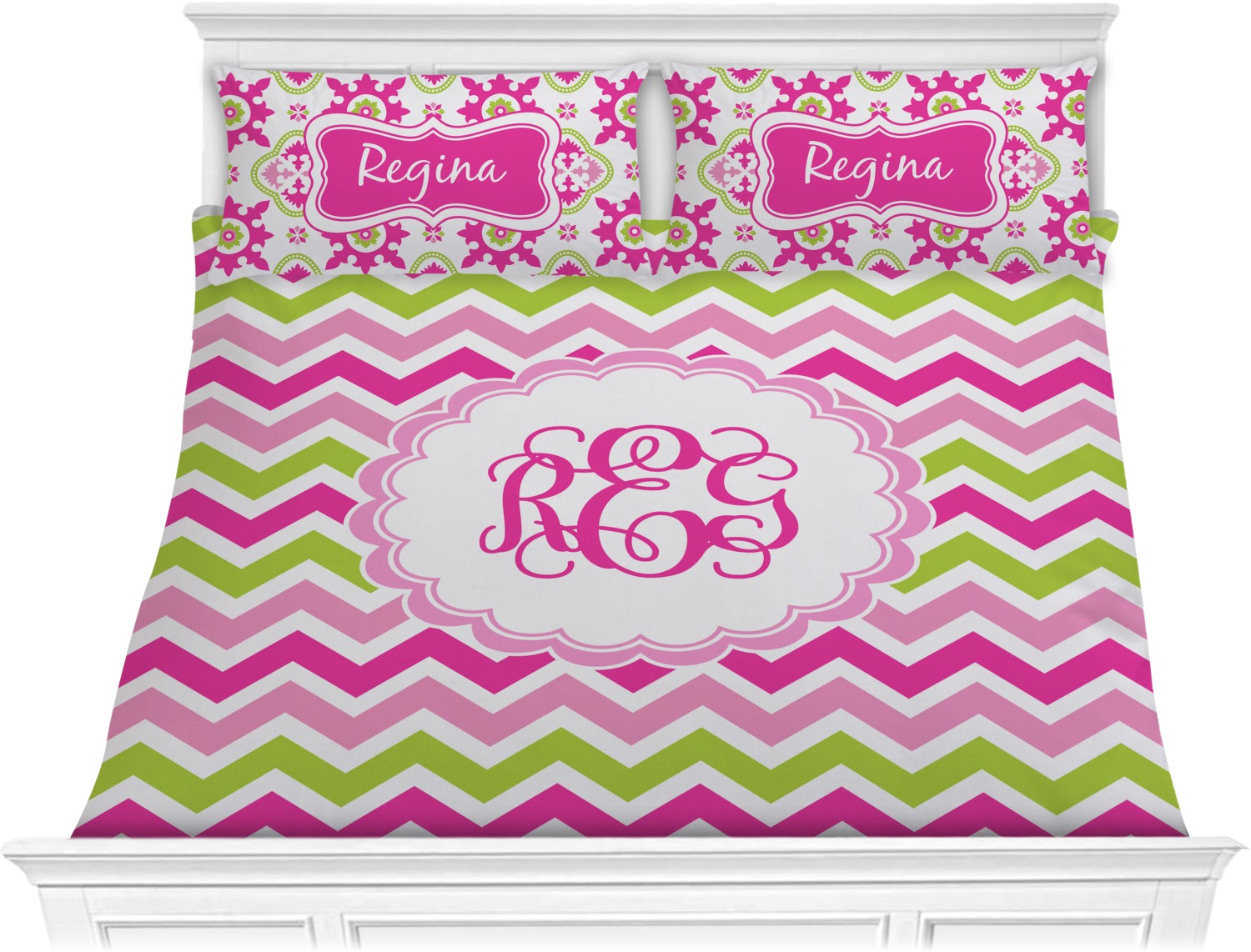 Looking for a girly girl design. This pink and green chevron print with a scalloped label and an interlocking monogram is as girly as it gets. We have created this chevron pattern in lime green, orchid pink and hot pink. For all of us girly girls and princesses, this is our design choice!