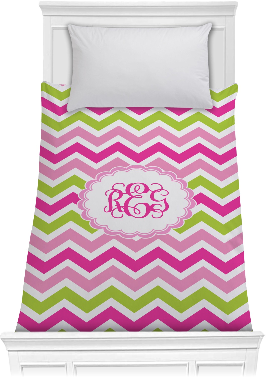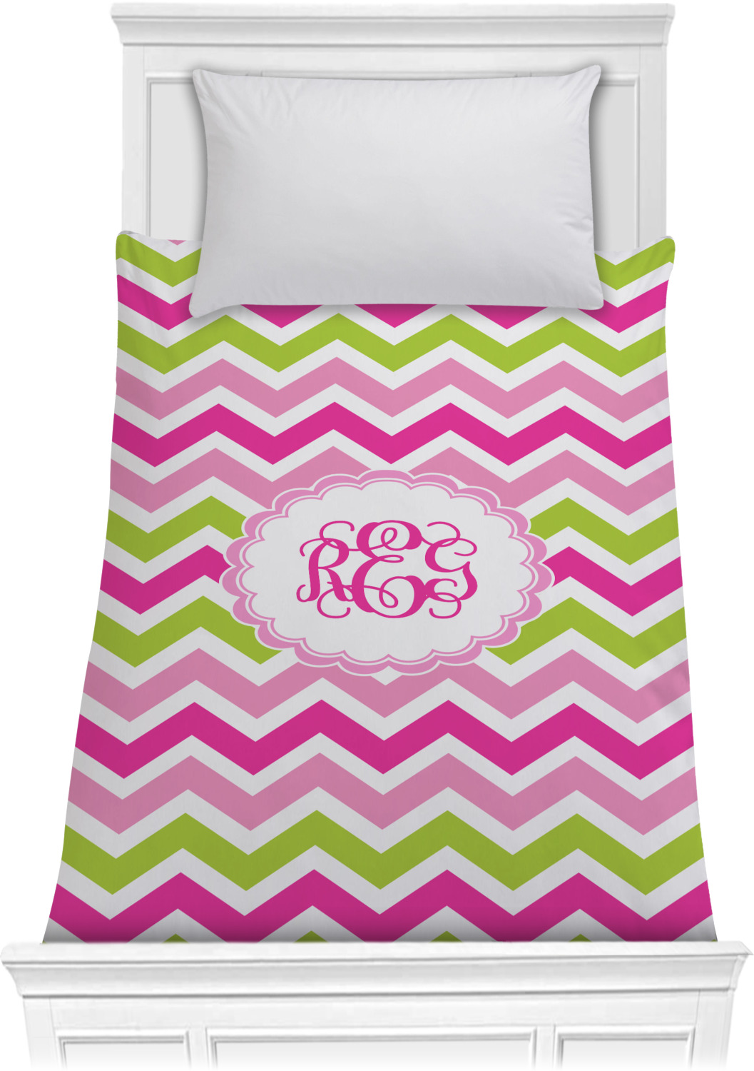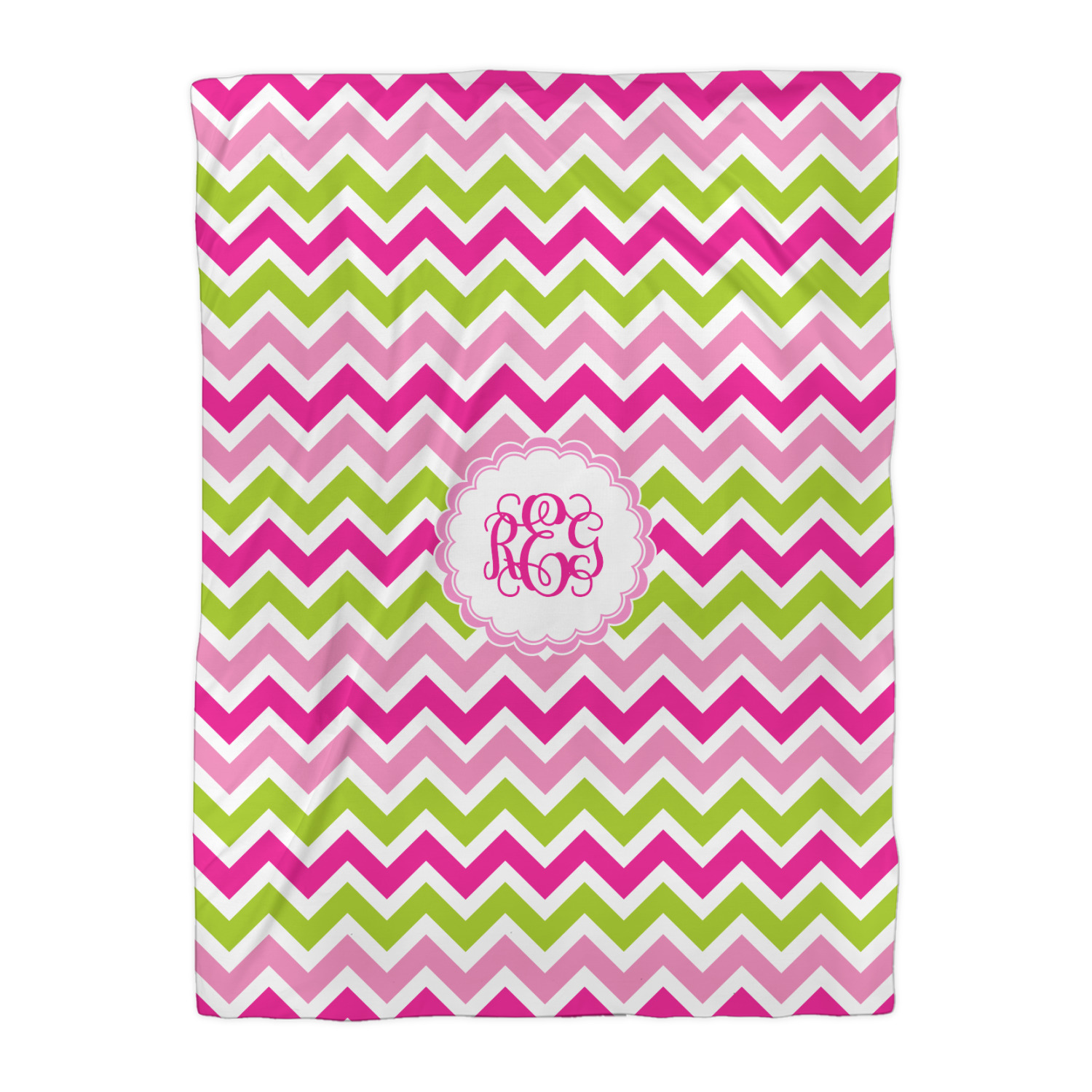 Looking for a girly girl design. This pink and green chevron print with a scalloped label and an interlocking monogram is as girly as it gets. We have created this chevron pattern in lime green, orchid pink and hot pink. For all of us girly girls and princesses, this is our design choice!