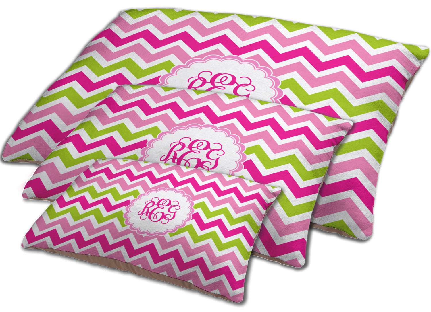 Looking for a girly girl design. This pink and green chevron print with a scalloped label and an interlocking monogram is as girly as it gets. We have created this chevron pattern in lime green, orchid pink and hot pink. For all of us girly girls and princesses, this is our design choice!