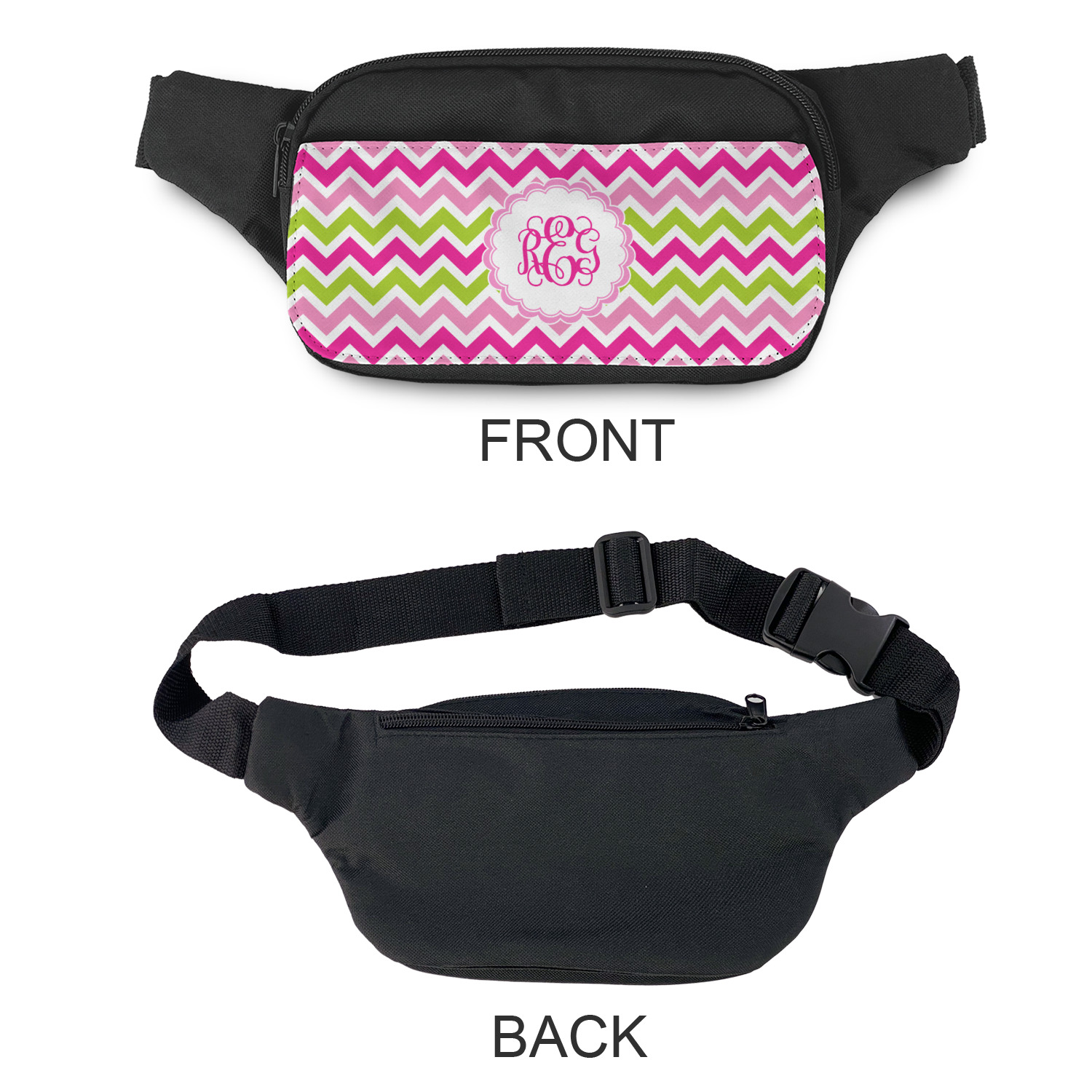 This is a unisex fanny pack - suitable for both men & women. The front flap is printed in full color with your design. You can add a photo, logo or any image that you would like. We offer a number of design templates that can be customized by you to your liking.