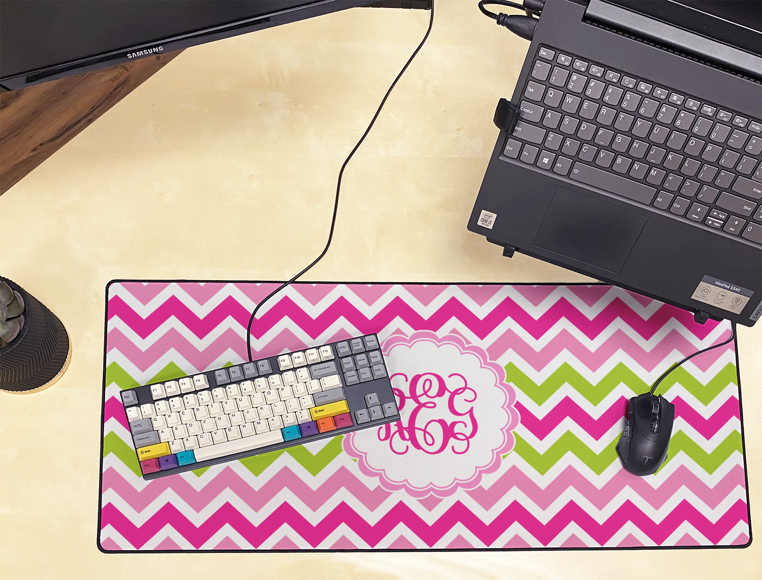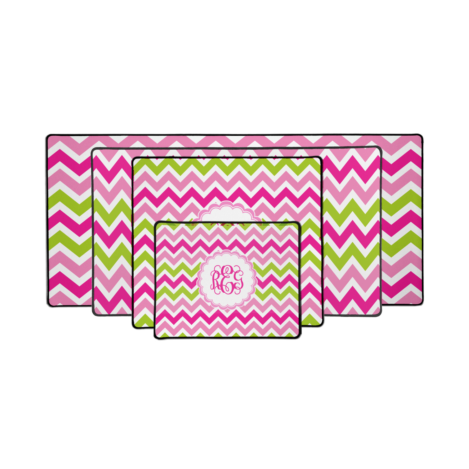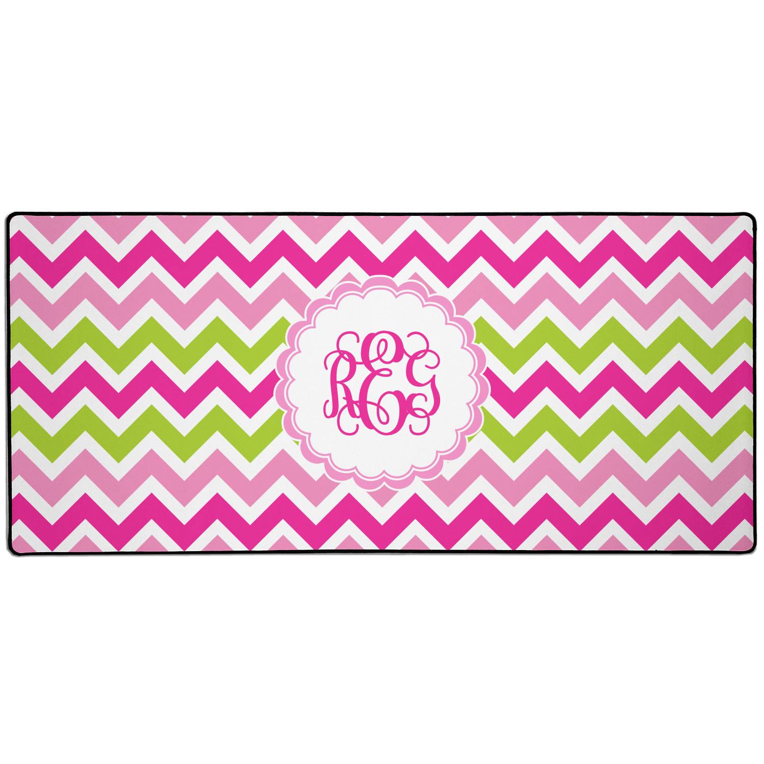 Looking for a girly girl design. This pink and green chevron print with a scalloped label and an interlocking monogram is as girly as it gets. We have created this chevron pattern in lime green, orchid pink and hot pink. For all of us girly girls and princesses, this is our design choice!