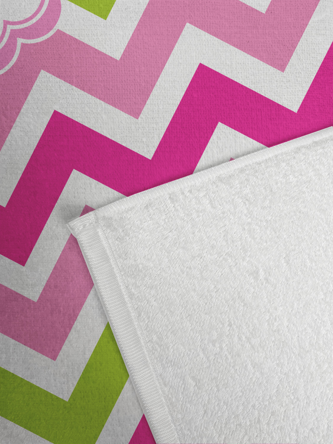 Looking for a girly girl design. This pink and green chevron print with a scalloped label and an interlocking monogram is as girly as it gets. We have created this chevron pattern in lime green, orchid pink and hot pink. For all of us girly girls and princesses, this is our design choice!
