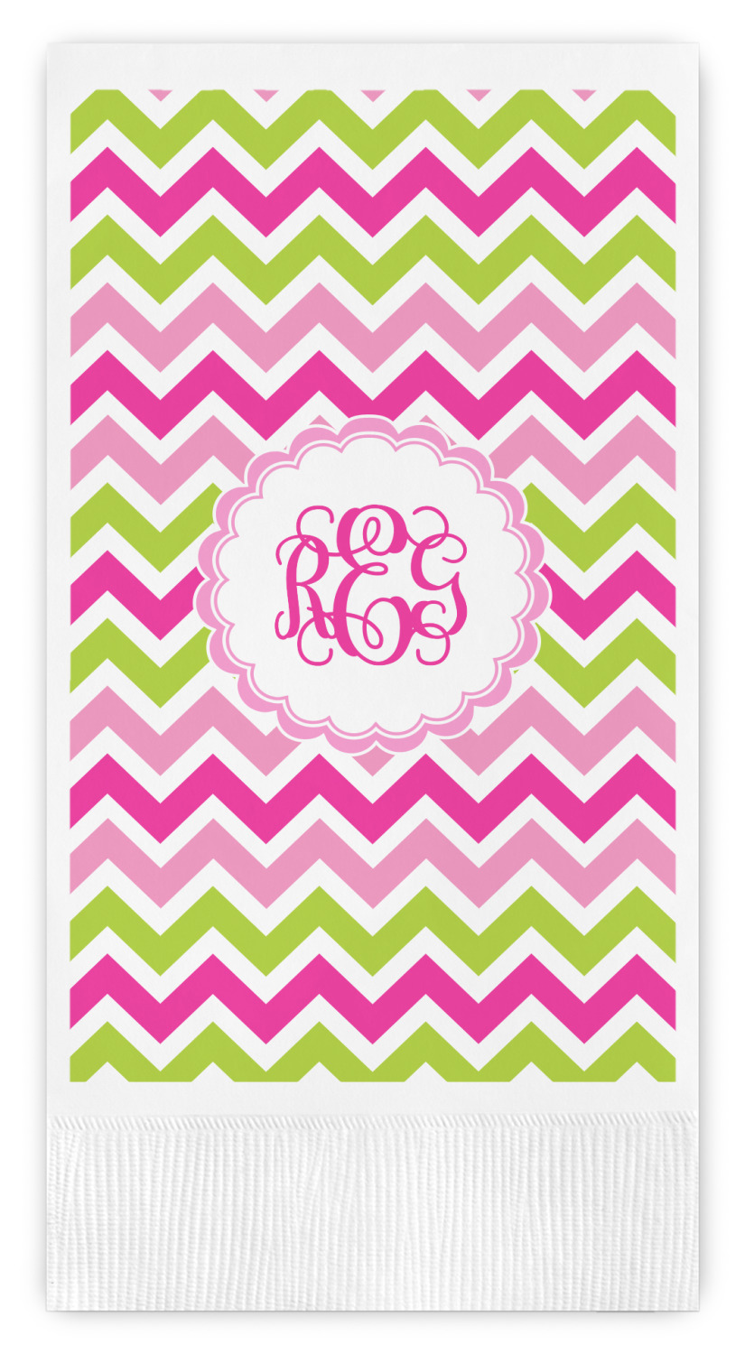 Looking for a girly girl design. This pink and green chevron print with a scalloped label and an interlocking monogram is as girly as it gets. We have created this chevron pattern in lime green, orchid pink and hot pink. For all of us girly girls and princesses, this is our design choice!