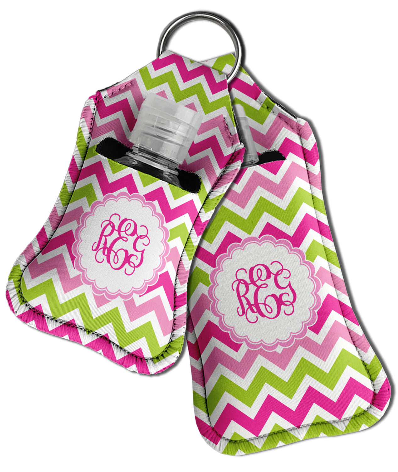 Each hand sanitizer holder comes with its own empty travel-sized, refillable hand sanitizer sure to fit snug in your customized sanitizer case! Our hand sanitizer cases are a durable, yet soft neoprene material sure to last any daily activities or travel agenda. Customize and personalize a hand sanitizer bottle holder with one of our two sizes - small (4.25" x 2.25") or large (5.5" x 2.5"). Each travel sanitizer holder comes with a keyring for attachment on bags, keys, or more!