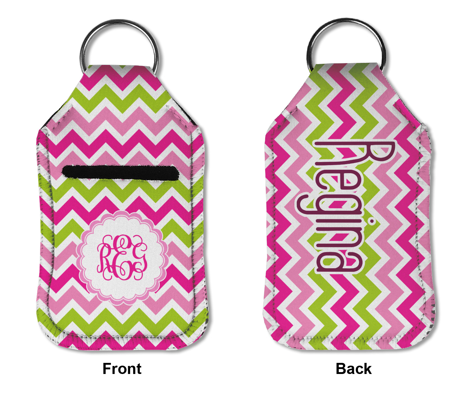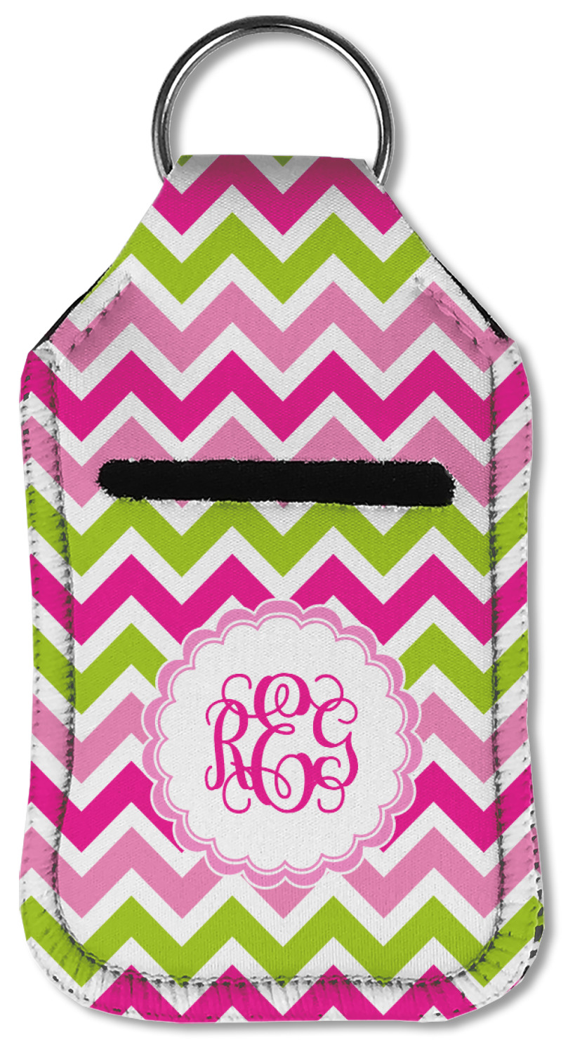 Each hand sanitizer holder comes with its own empty travel-sized, refillable hand sanitizer sure to fit snug in your customized sanitizer case! Our hand sanitizer cases are a durable, yet soft neoprene material sure to last any daily activities or travel agenda. Customize and personalize a hand sanitizer bottle holder with one of our two sizes - small (4.25" x 2.25") or large (5.5" x 2.5"). Each travel sanitizer holder comes with a keyring for attachment on bags, keys, or more!