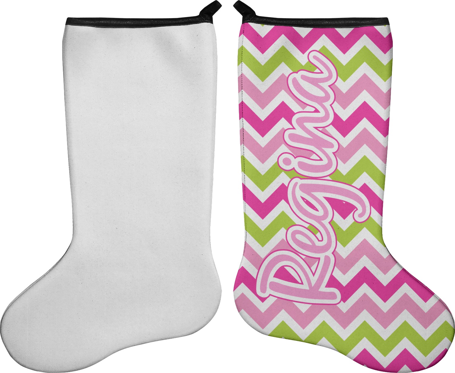 These 17" x 11" stockings are made of neoprene and have a black trim to give them a fantastic finished look. Your very own design is printed right onto the stocking, either single sided with white on the back or double sided where can use the same or different designs / patterns on the front and the back - the choice is yours. At the top of the stocking is a 2" loop for hanging.