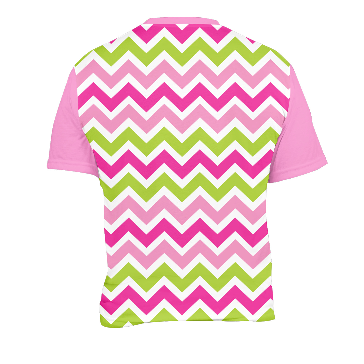 Looking for a girly girl design. This pink and green chevron print with a scalloped label and an interlocking monogram is as girly as it gets. We have created this chevron pattern in lime green, orchid pink and hot pink. For all of us girly girls and princesses, this is our design choice!