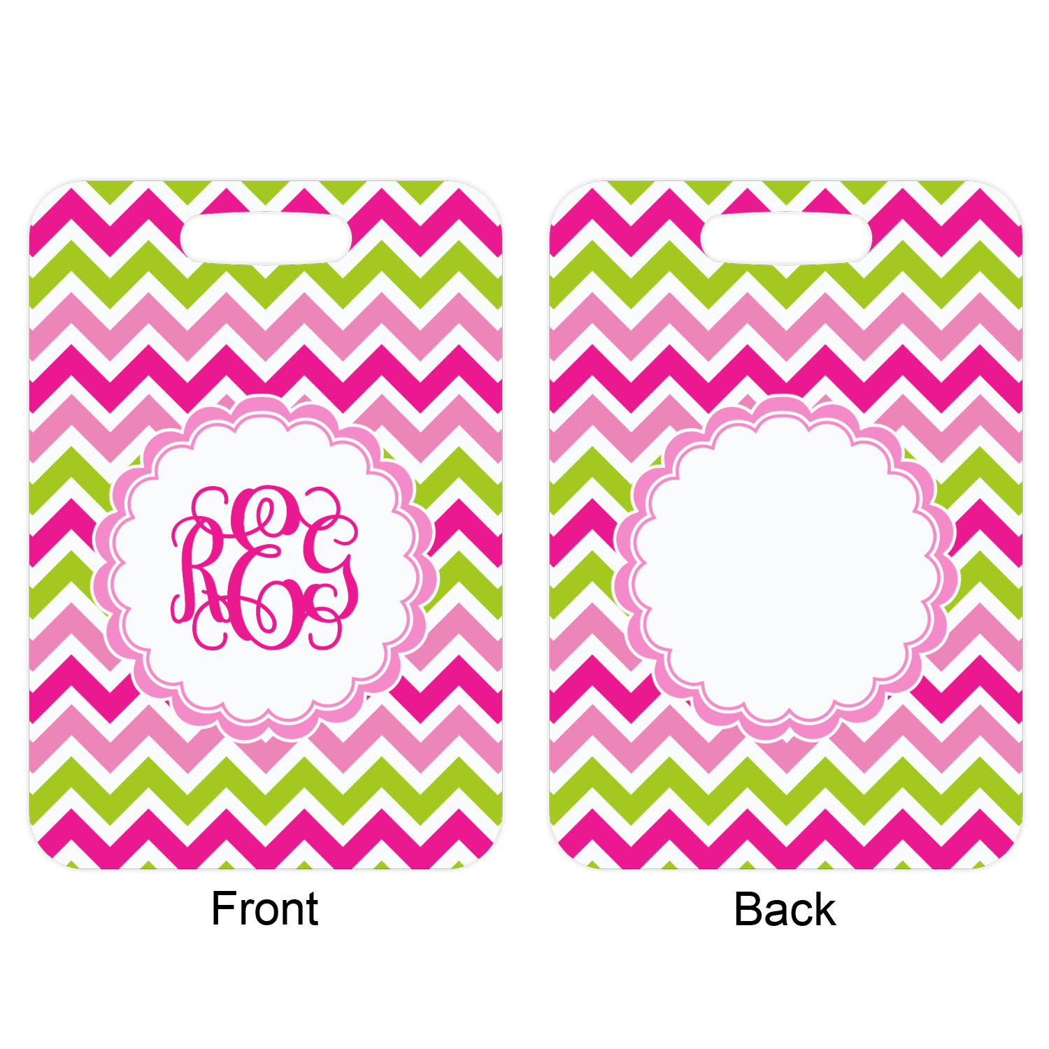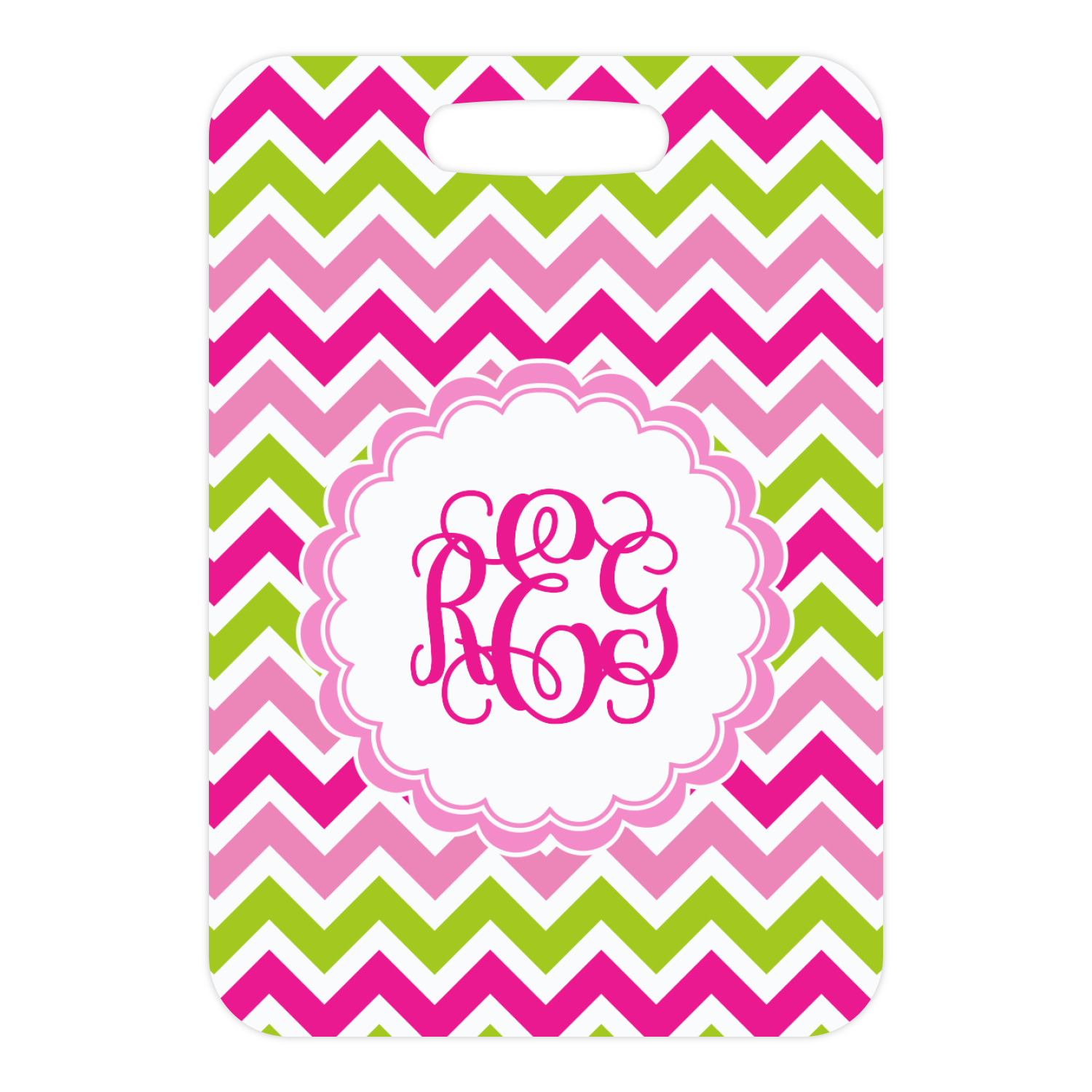Looking for a girly girl design. This pink and green chevron print with a scalloped label and an interlocking monogram is as girly as it gets. We have created this chevron pattern in lime green, orchid pink and hot pink. For all of us girly girls and princesses, this is our design choice!