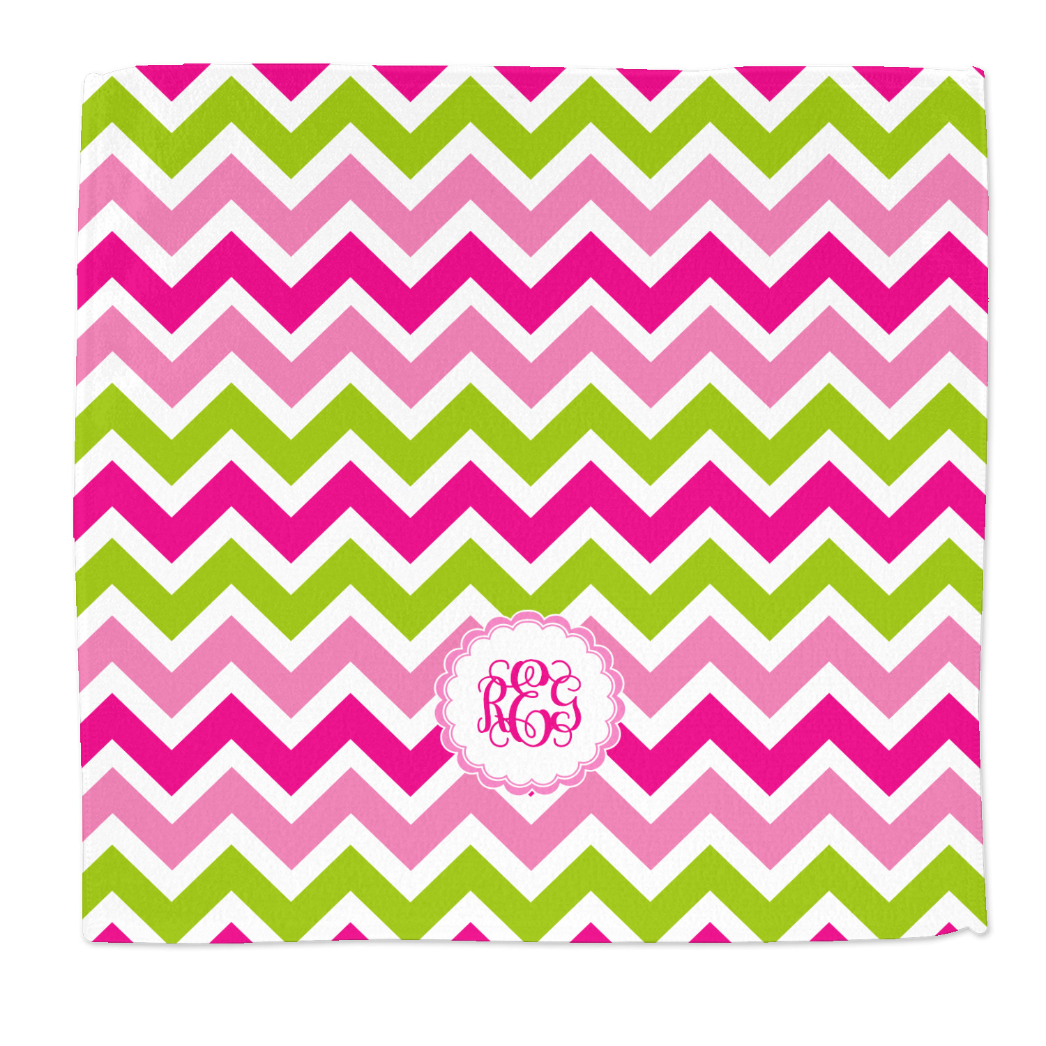 Looking for a girly girl design. This pink and green chevron print with a scalloped label and an interlocking monogram is as girly as it gets. We have created this chevron pattern in lime green, orchid pink and hot pink. For all of us girly girls and princesses, this is our design choice!