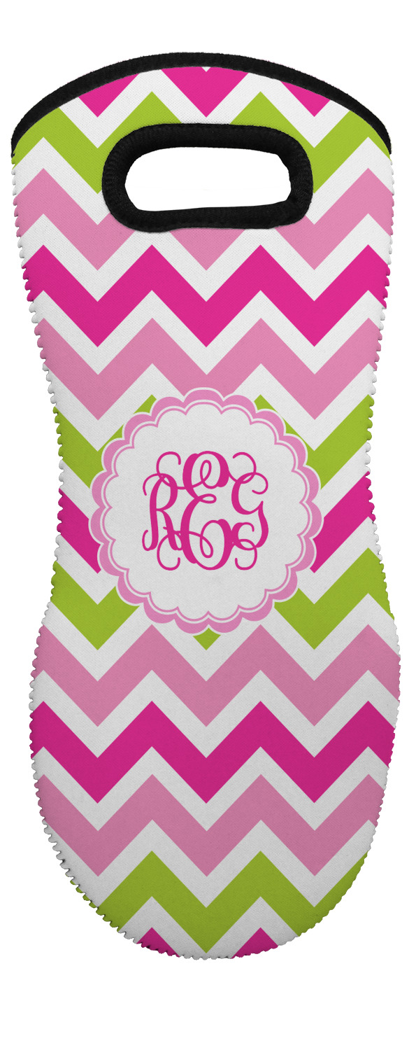 Looking for a girly girl design. This pink and green chevron print with a scalloped label and an interlocking monogram is as girly as it gets. We have created this chevron pattern in lime green, orchid pink and hot pink. For all of us girly girls and princesses, this is our design choice!