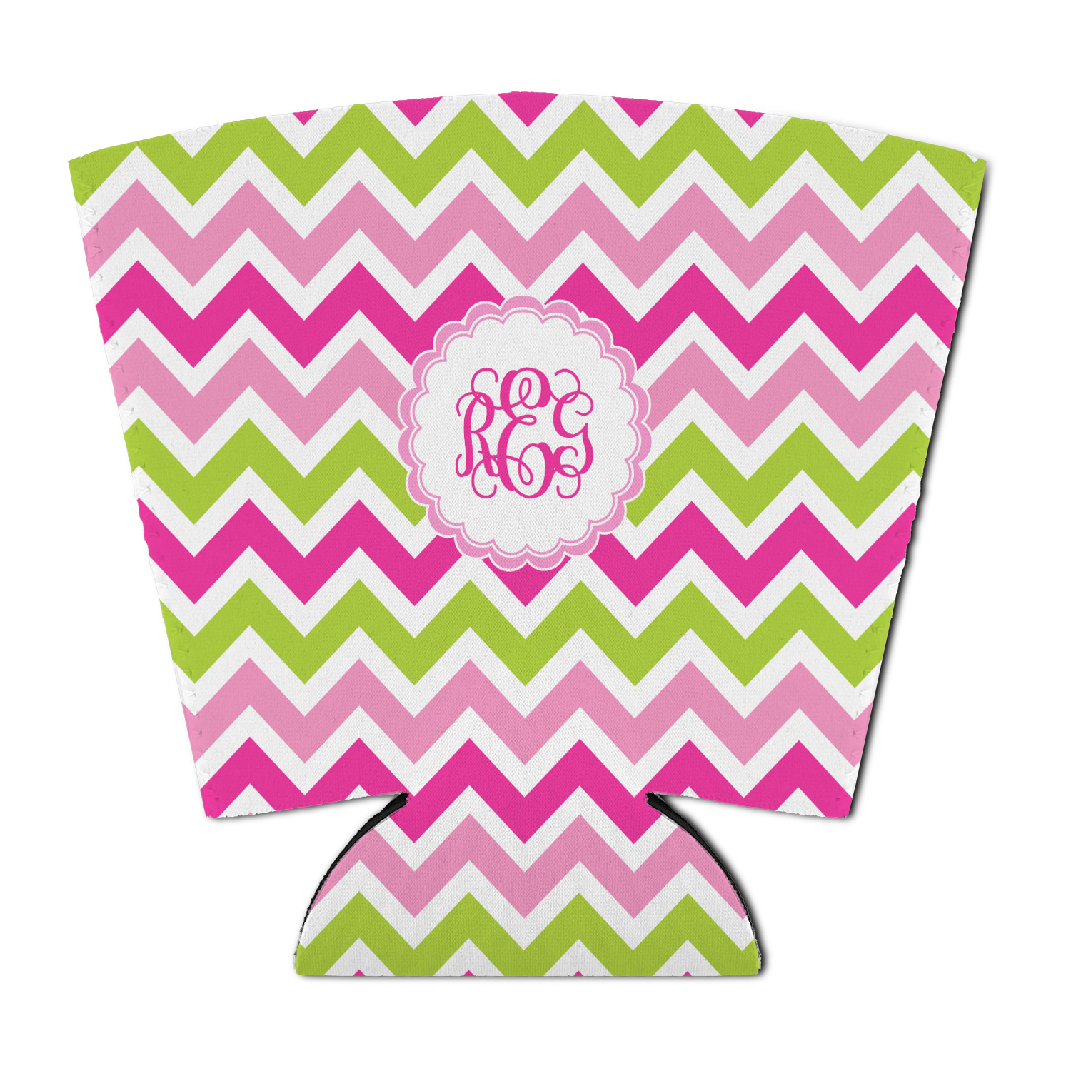 Looking for a girly girl design. This pink and green chevron print with a scalloped label and an interlocking monogram is as girly as it gets. We have created this chevron pattern in lime green, orchid pink and hot pink. For all of us girly girls and princesses, this is our design choice!