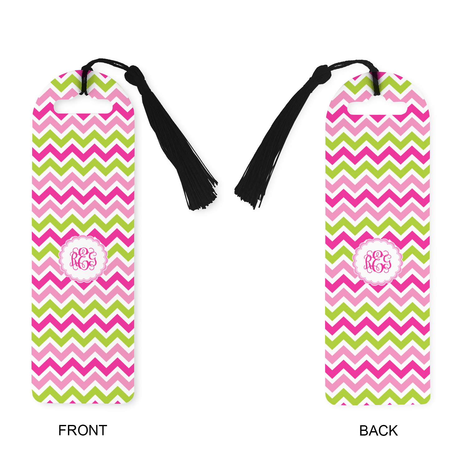 Made from a durable, flexible plastic, these bookmarks are printed with your custom design on them. With the tassel on them they make it easy to find your page in your book. These are a rectangular shape 7 1/4 inches tall with a rounded top and are approximately 2 1/4 inches wide.