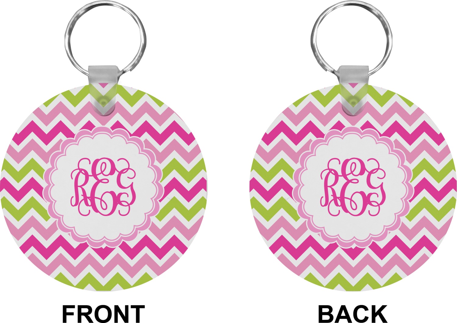Our personalized keychains attach to the included metal, split key ring with a plastic, removable snap. Since a metal ring is included with your purchase, you have the liberty to keep your keys together on the ring, with or without your unique keychain. We offer this keychain in three different shapes: circle, heart, or diamond. We print your personalized design(s) on both sides of the key chain, and the surface has a glossy, reflective finish that only emphasizes your design. Each keychain is approximately 2.25 by 2.25 inches.