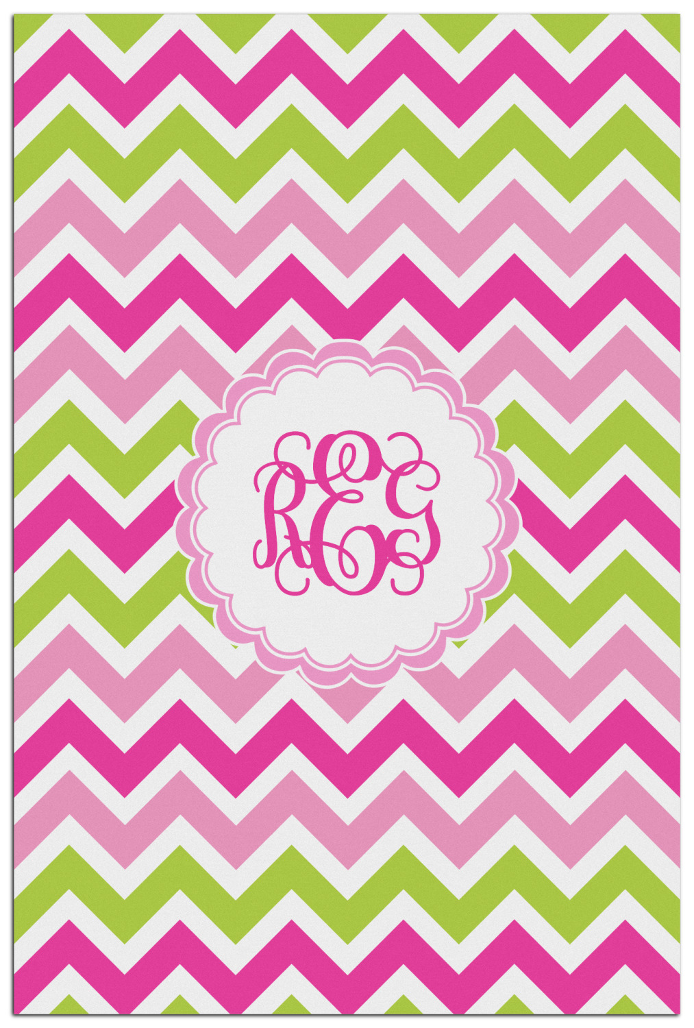 Looking for a girly girl design. This pink and green chevron print with a scalloped label and an interlocking monogram is as girly as it gets. We have created this chevron pattern in lime green, orchid pink and hot pink. For all of us girly girls and princesses, this is our design choice!